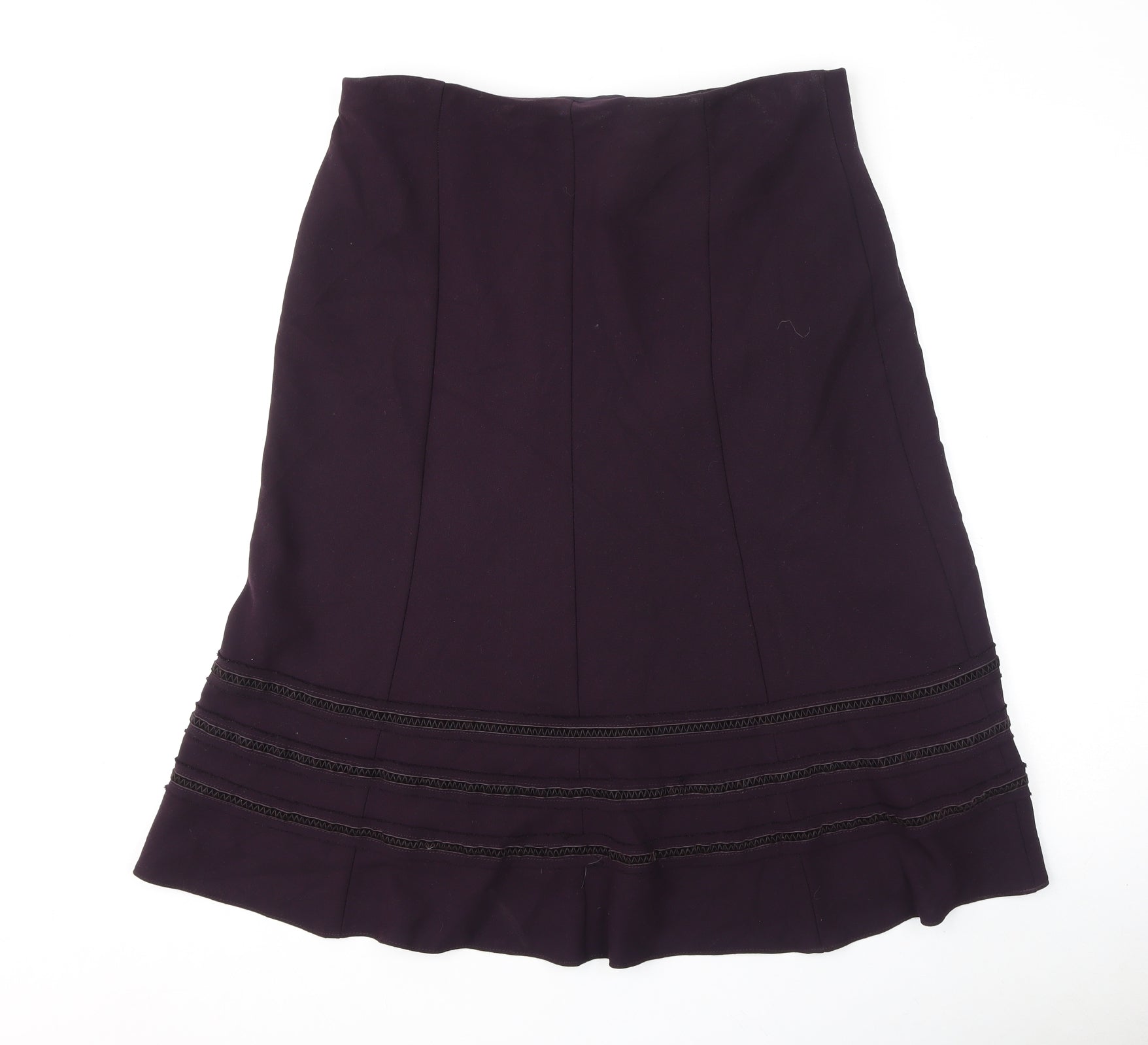 Marks and Spencer Womens Purple Polyester Flare Skirt Size 12 - Embroidery