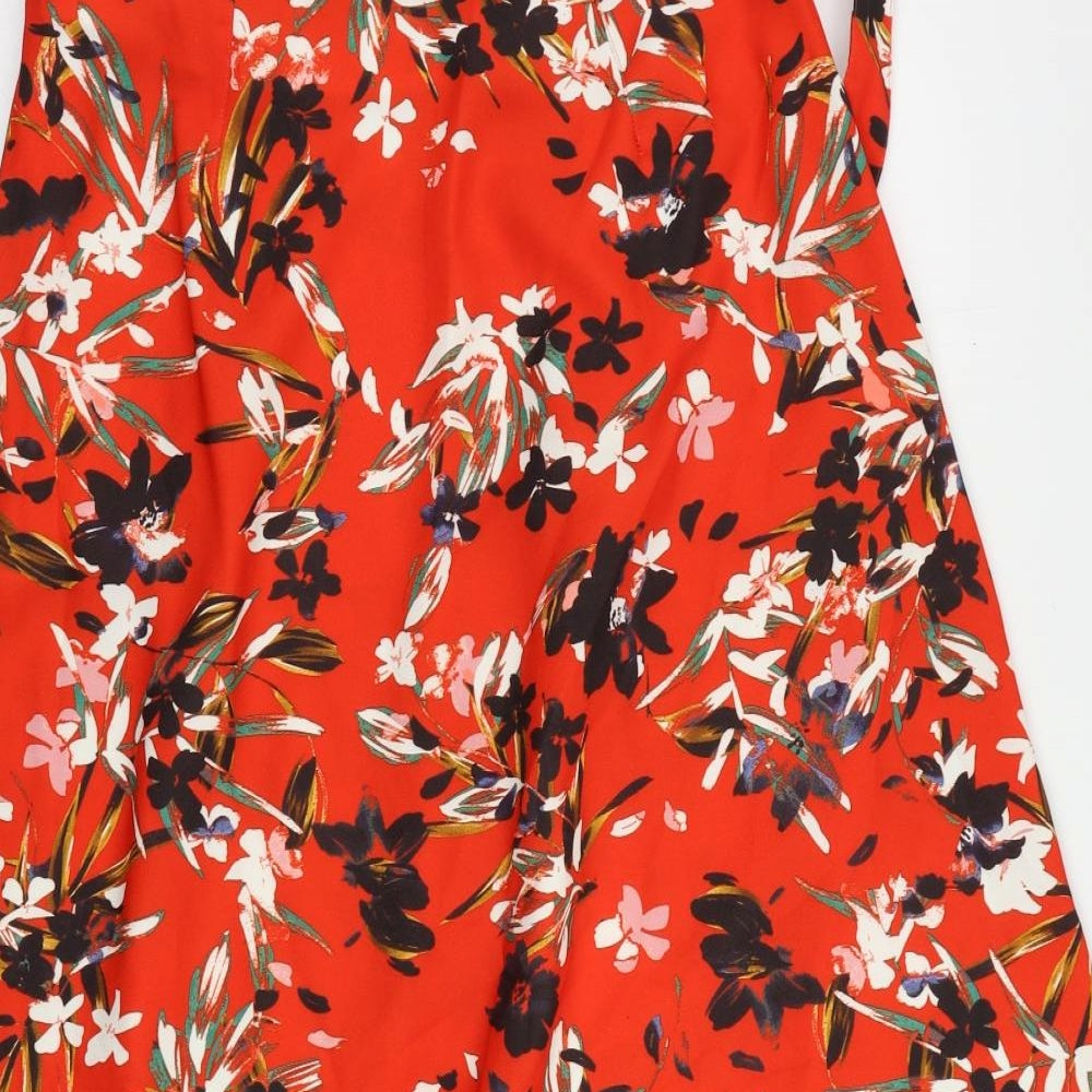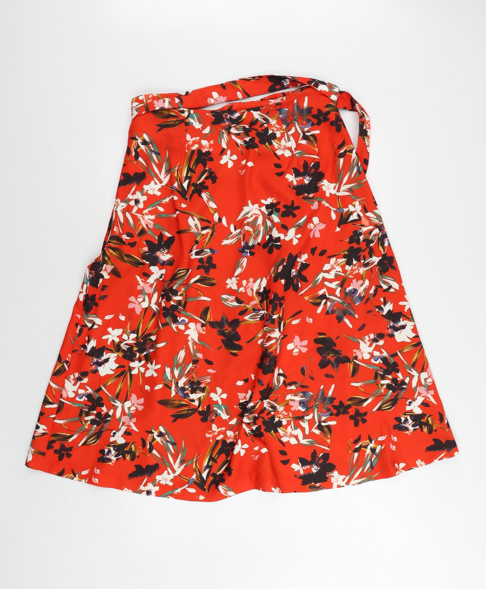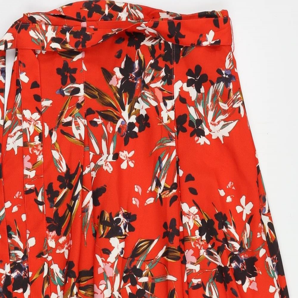 Marks and Spencer Womens Red Floral Polyester Flare Skirt Size 12 Zip