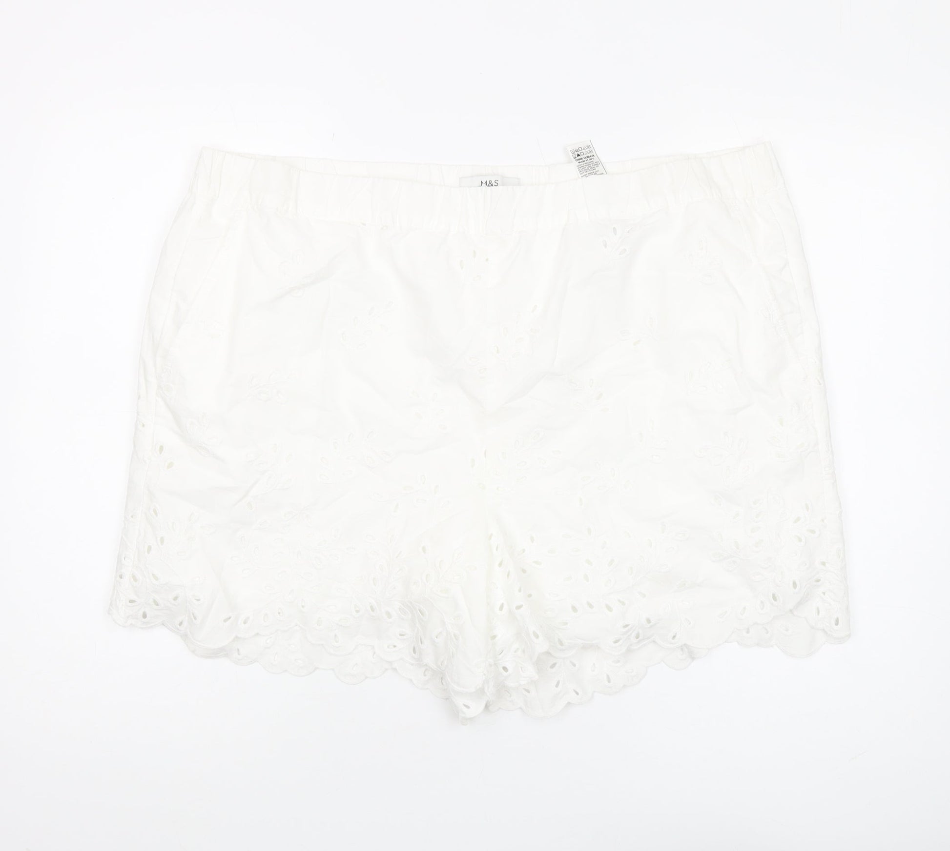 Marks and Spencer Women's White Cotton Embroidered Shorts