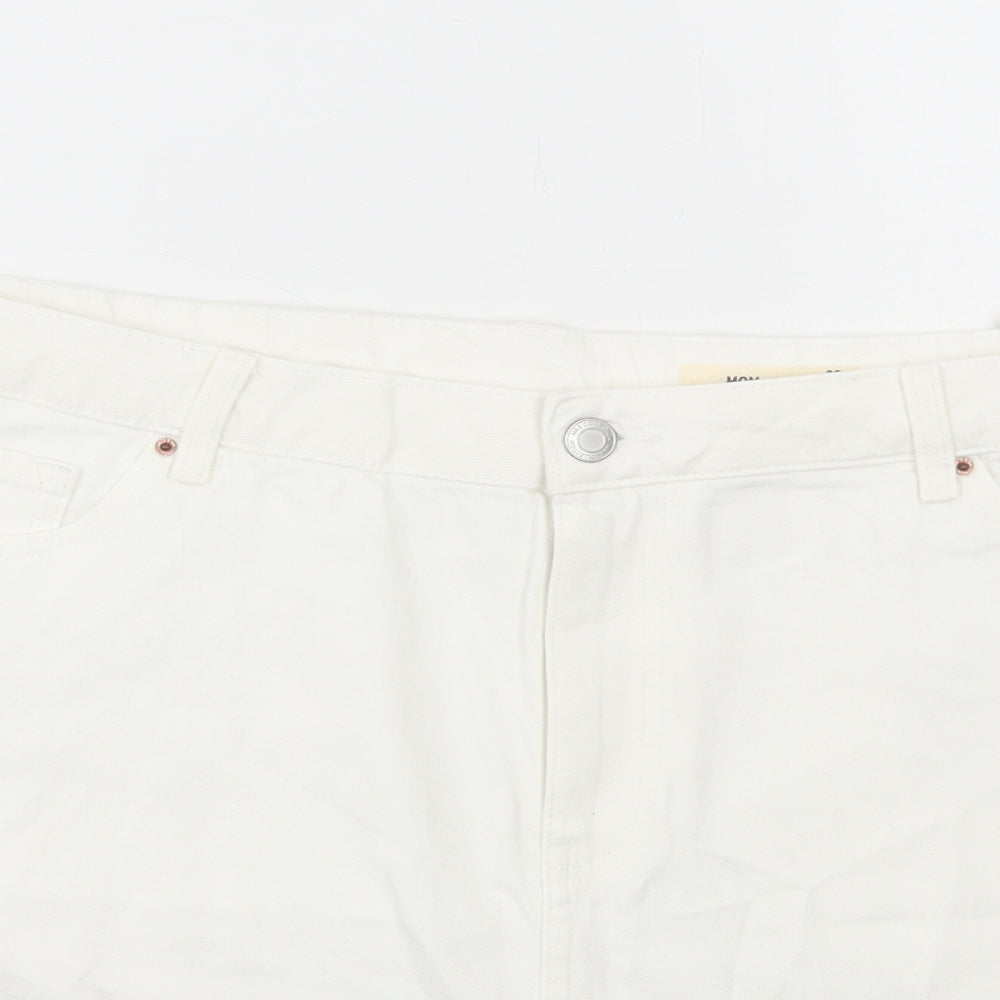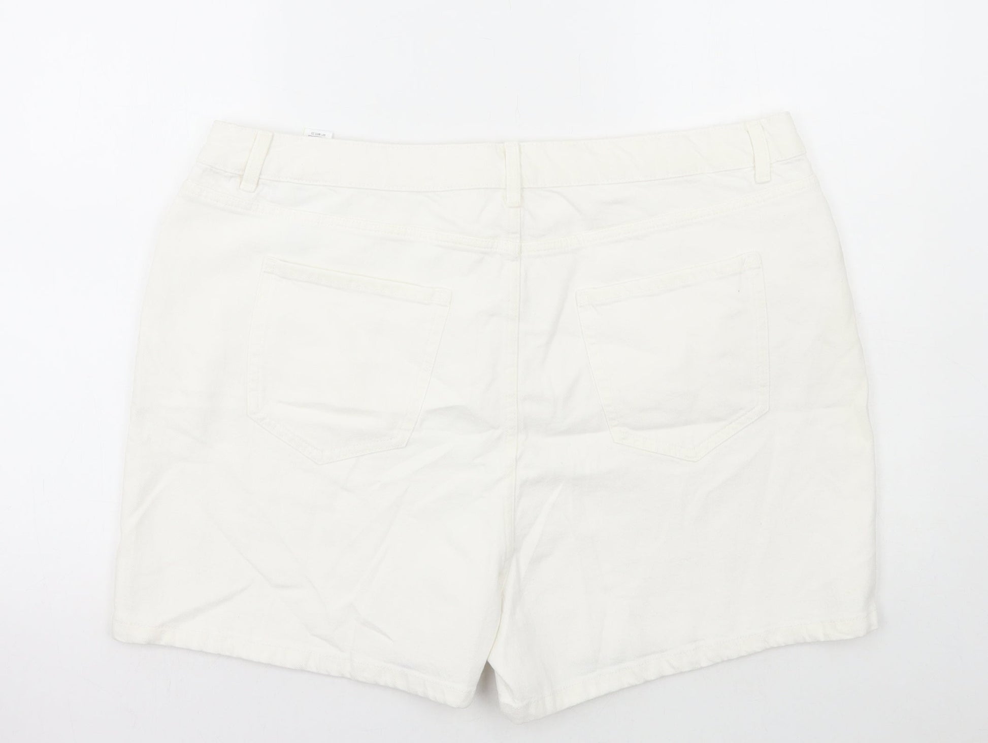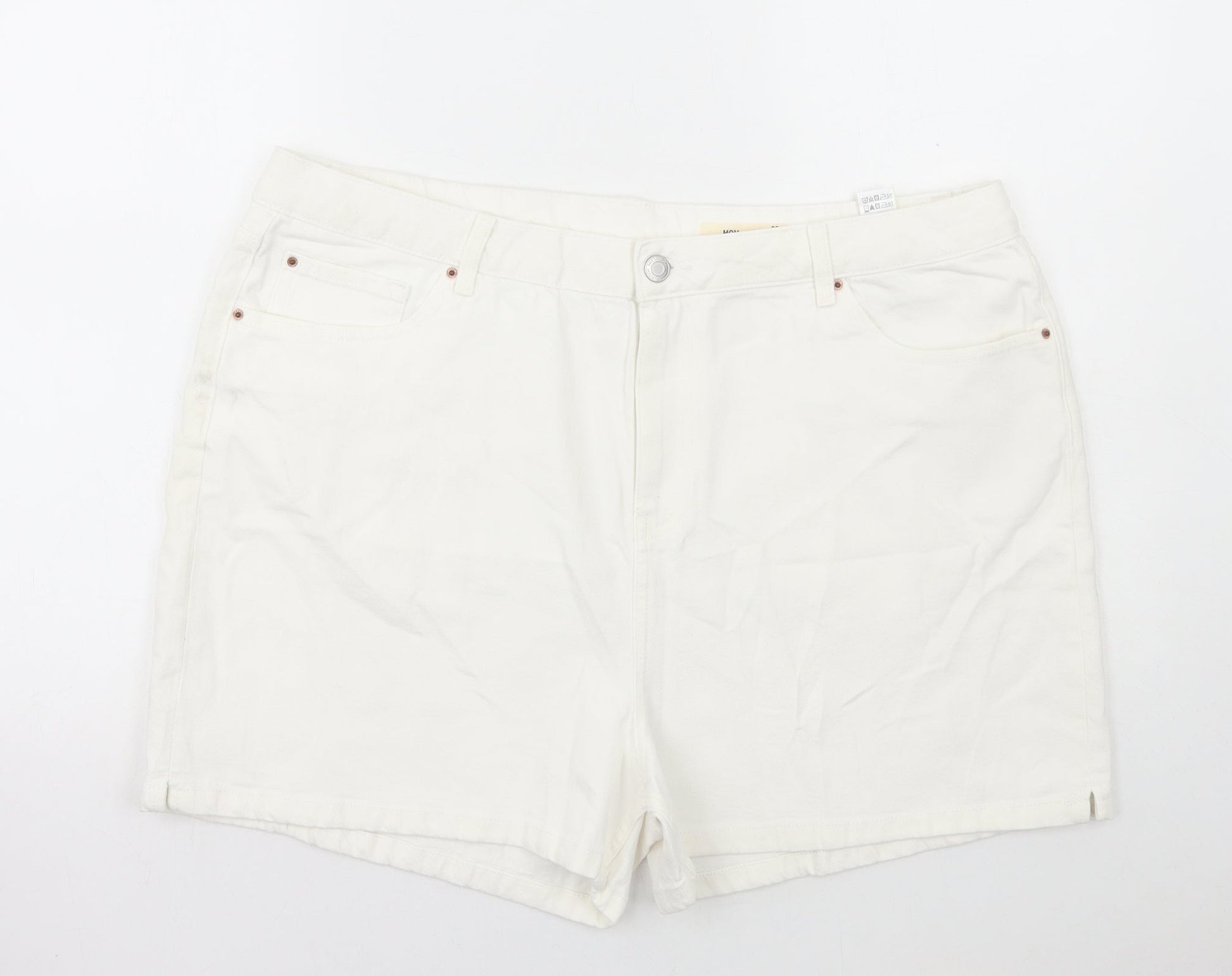 Marks and Spencer Womens White Cotton Mom Shorts Size 22 L3 in Regular Button