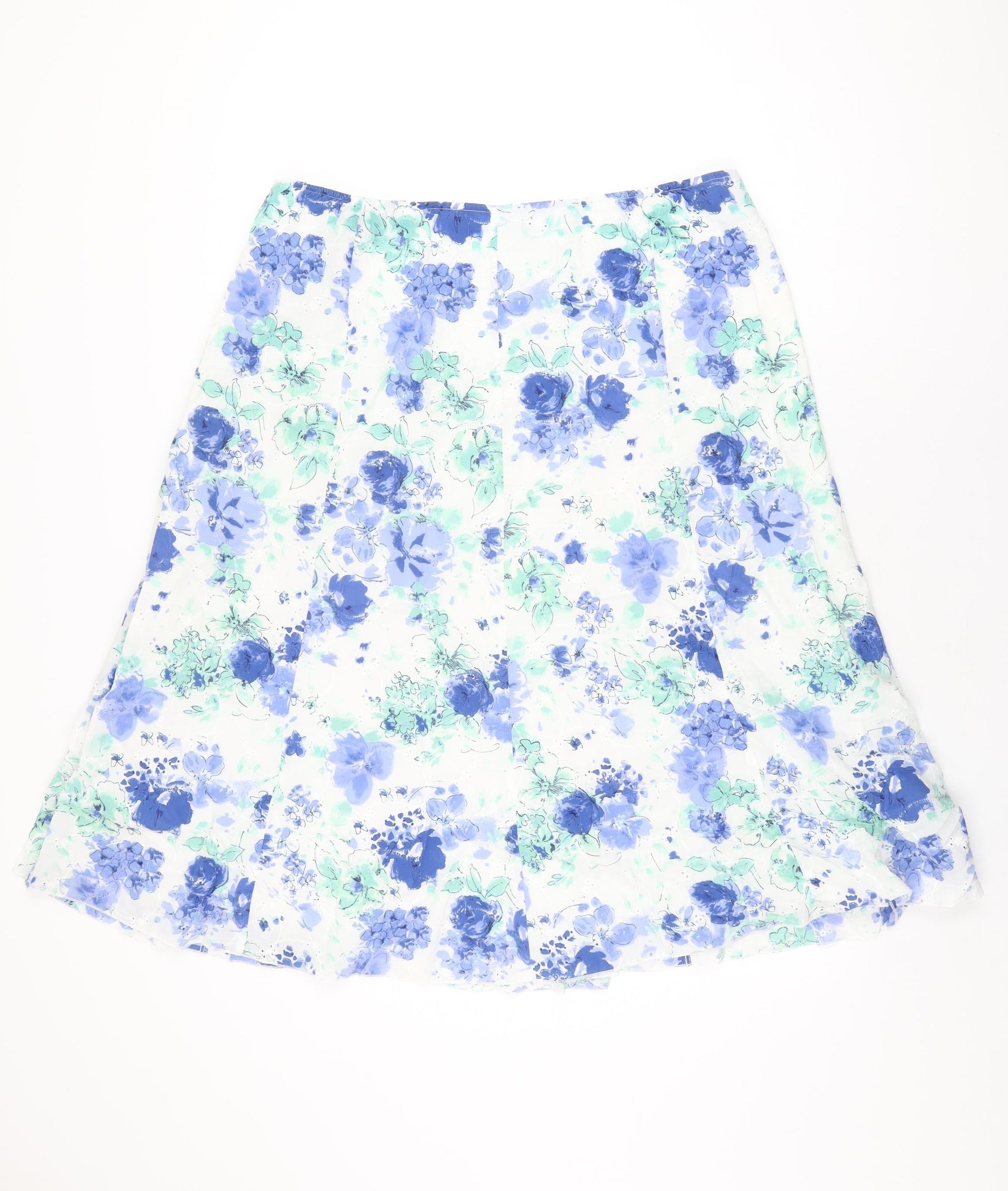 Marks and Spencer Womens White Floral Cotton Swing Skirt Size 18 Zip