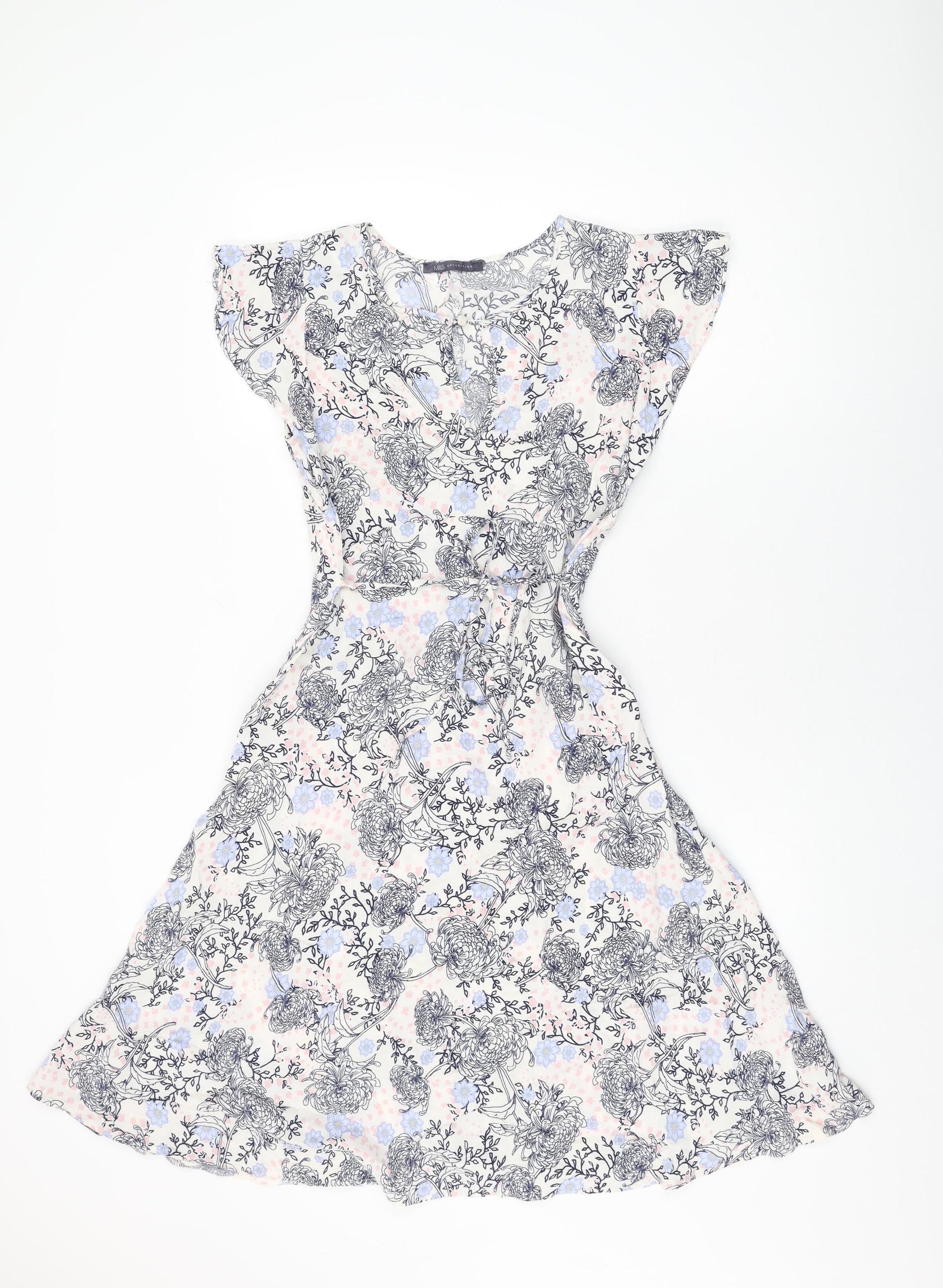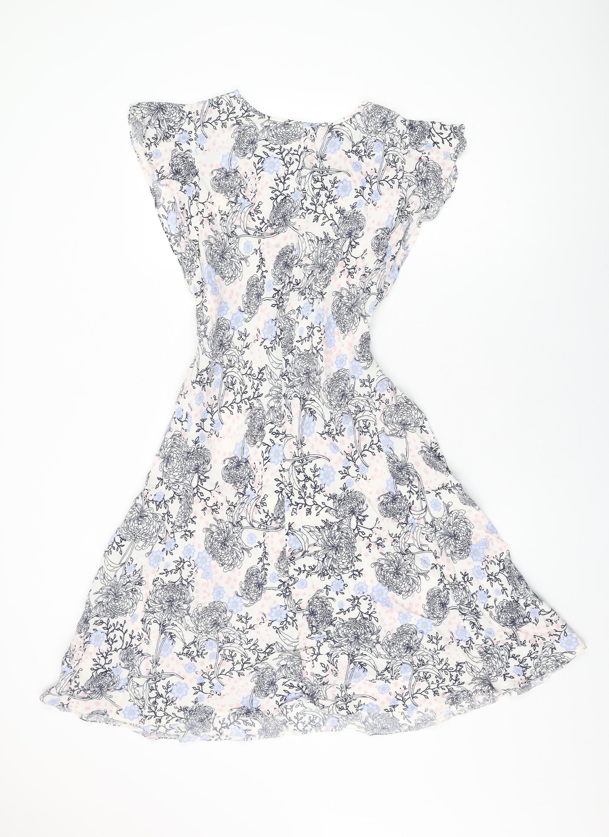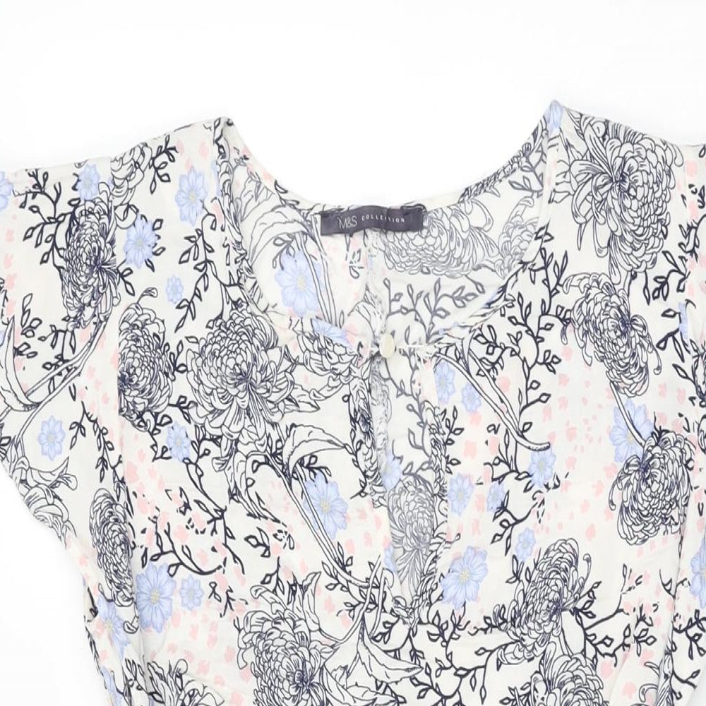 Marks and Spencer Womens White Floral Viscose A-Line Size 10 Round Neck Button
