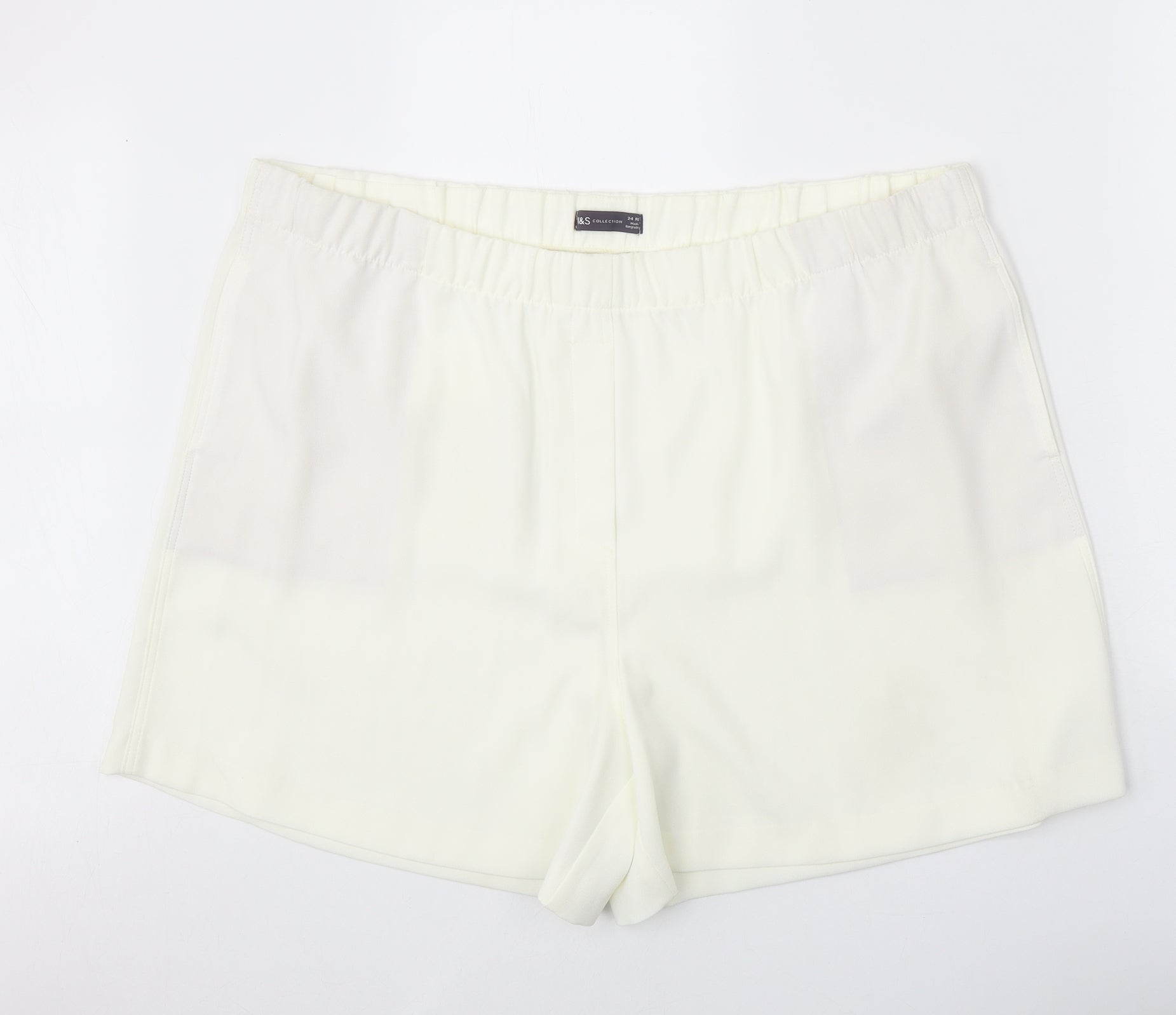 Marks and Spencer Womens White Polyester Basic Shorts Size 24 Regular Pull On
