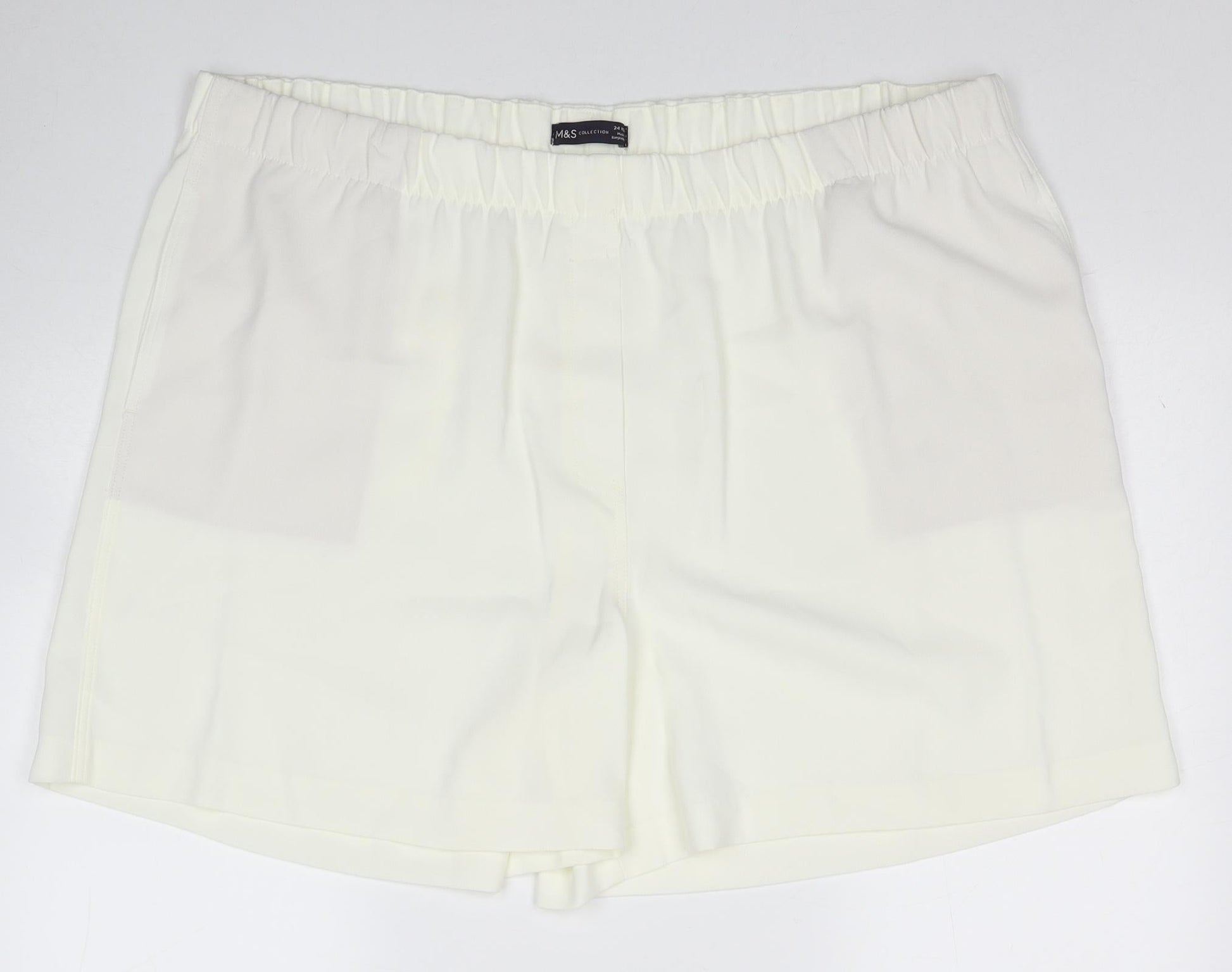 Marks and Spencer Womens White Polyester Mom Shorts Size 24 Regular Pull On