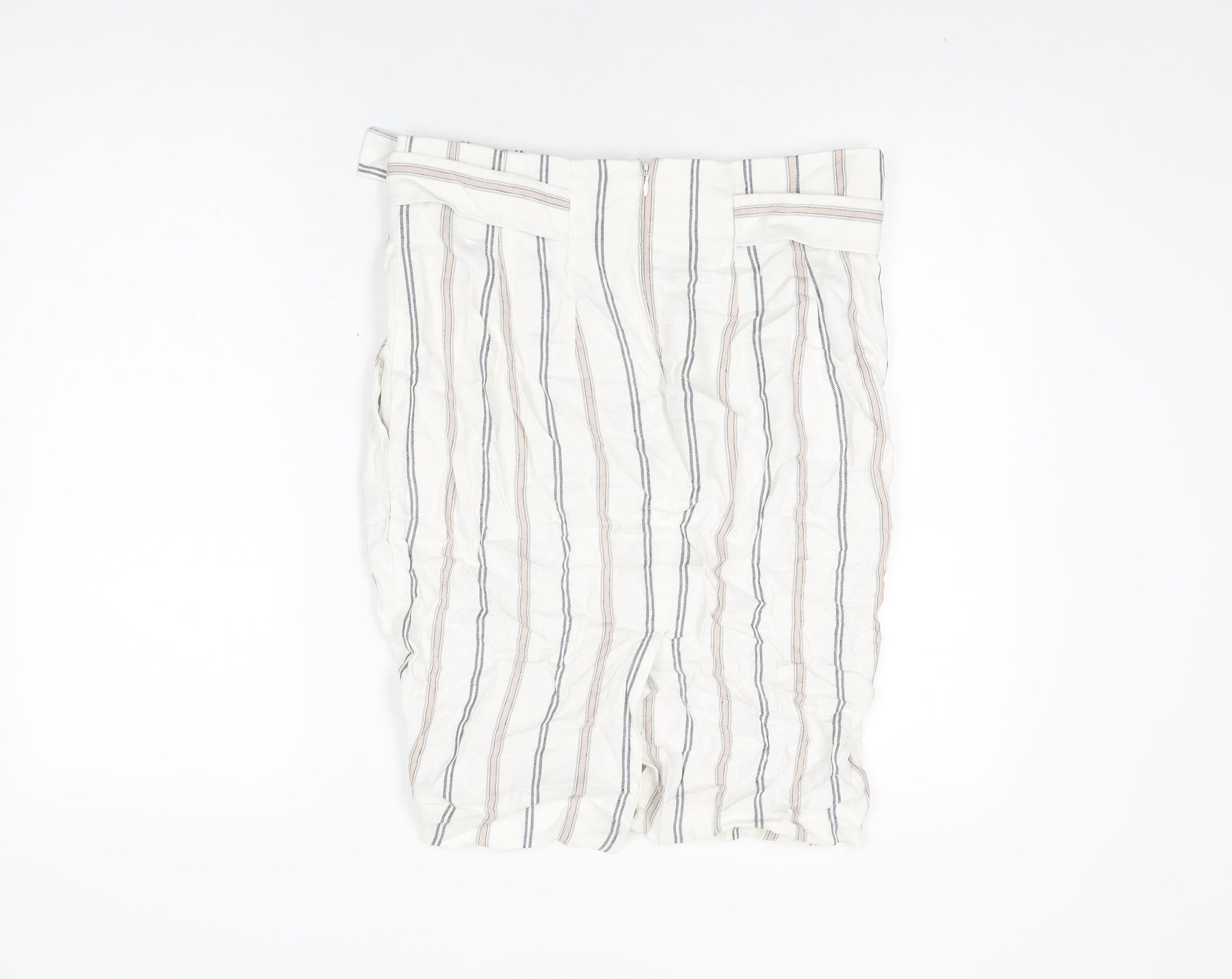 Marks and Spencer Womens White Striped Viscose Straight & Pencil Skirt Size 12 Zip