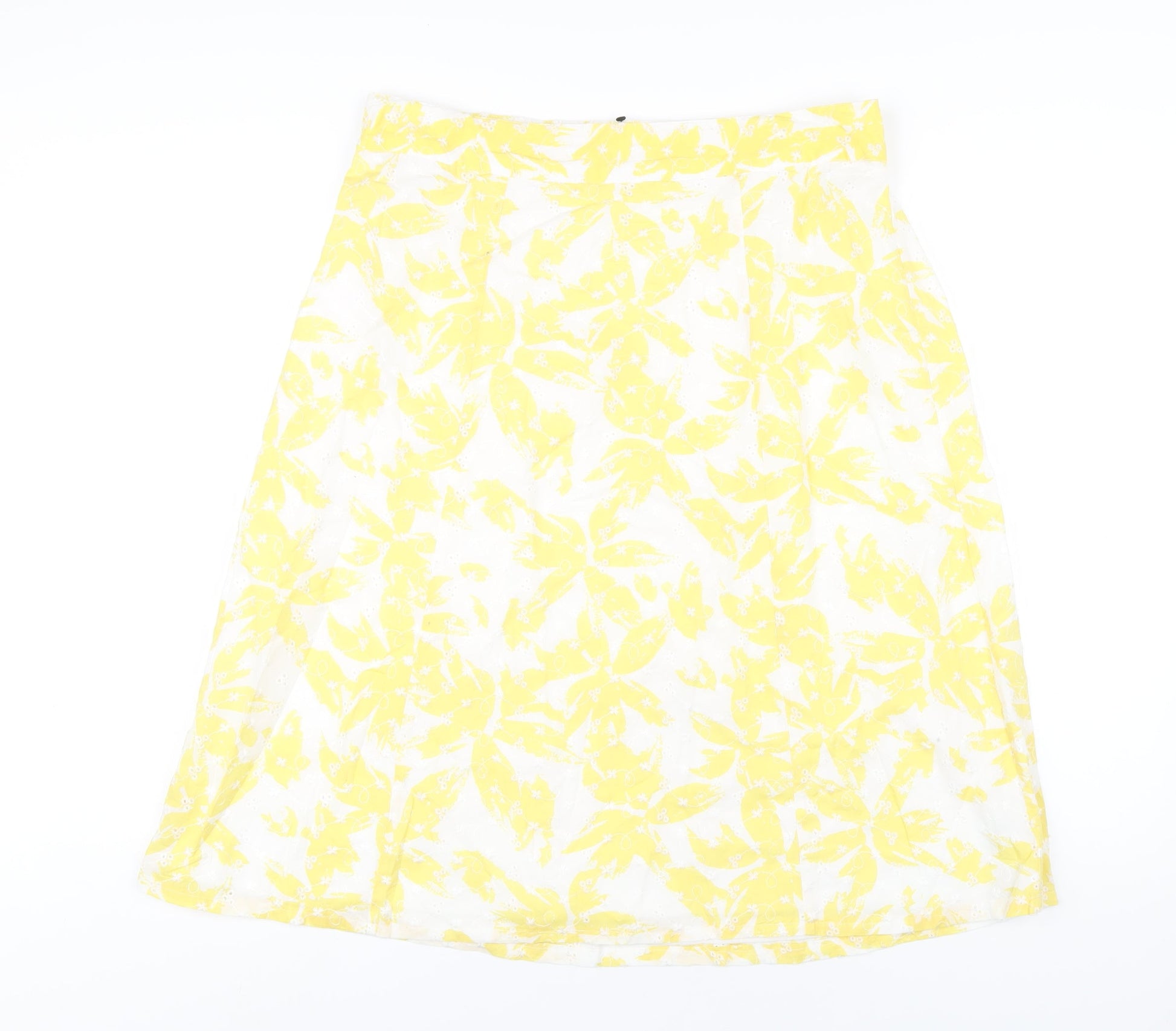 Marks and Spencer Womens Yellow Geometric Cotton A-Line Skirt Size 16