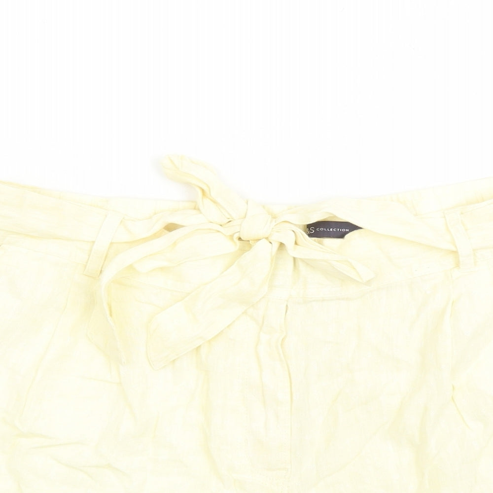 Marks and Spencer Womens Yellow Geometric Flax Chino Shorts Size 20 L4 in Regular Zip - Elasticated Waist Belted