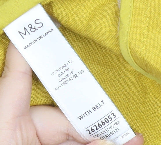 Marks and Spencer Womens Yellow Linen Blazer Size 12 Single-Breasted