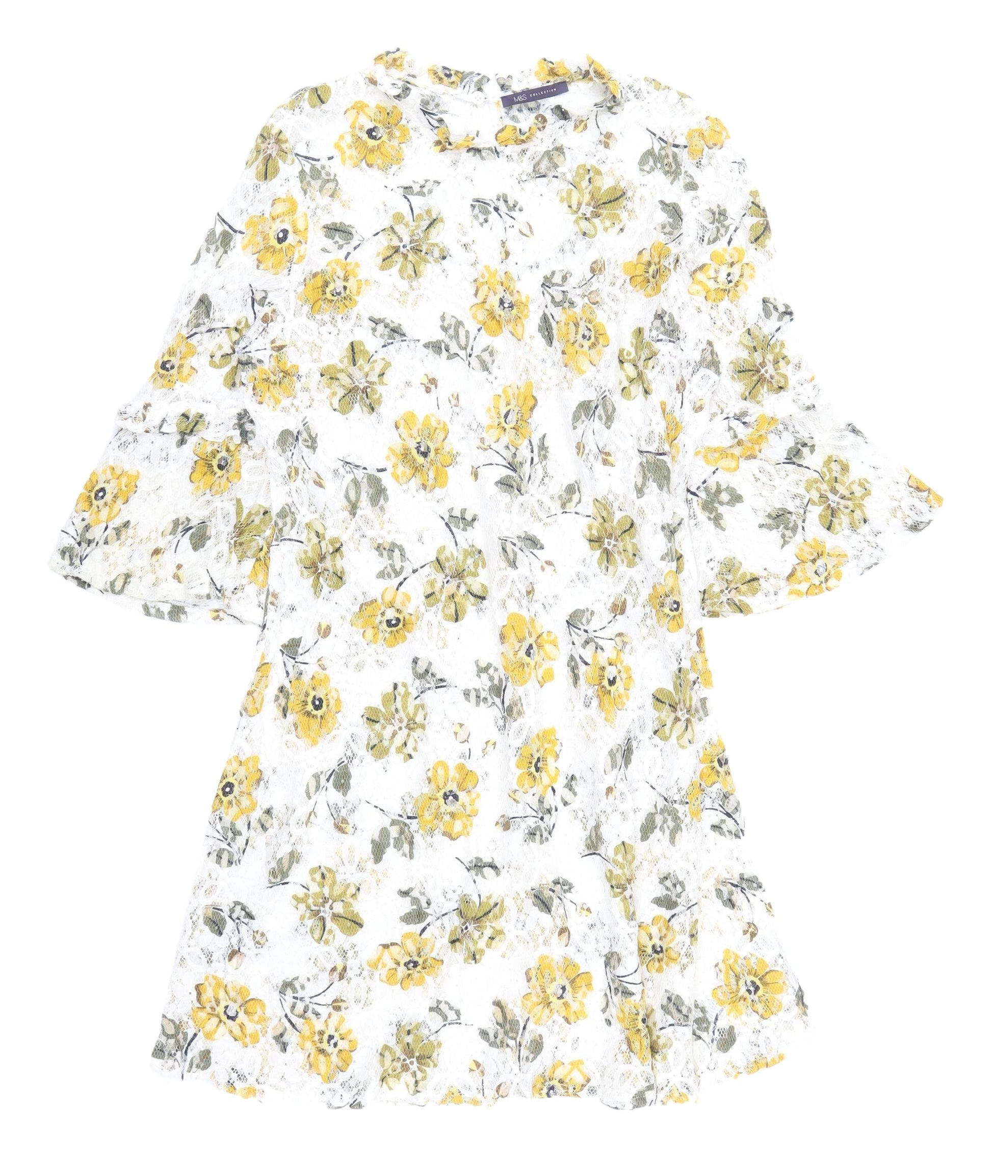 Marks & Spencer Floral Lace Dress, Size 14, Ivory