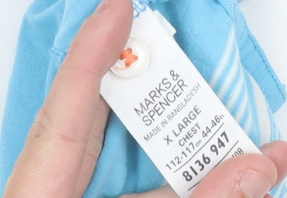 Marks & Spencer Men’s Blue Striped Polo Shirt XL Cotton Casual
