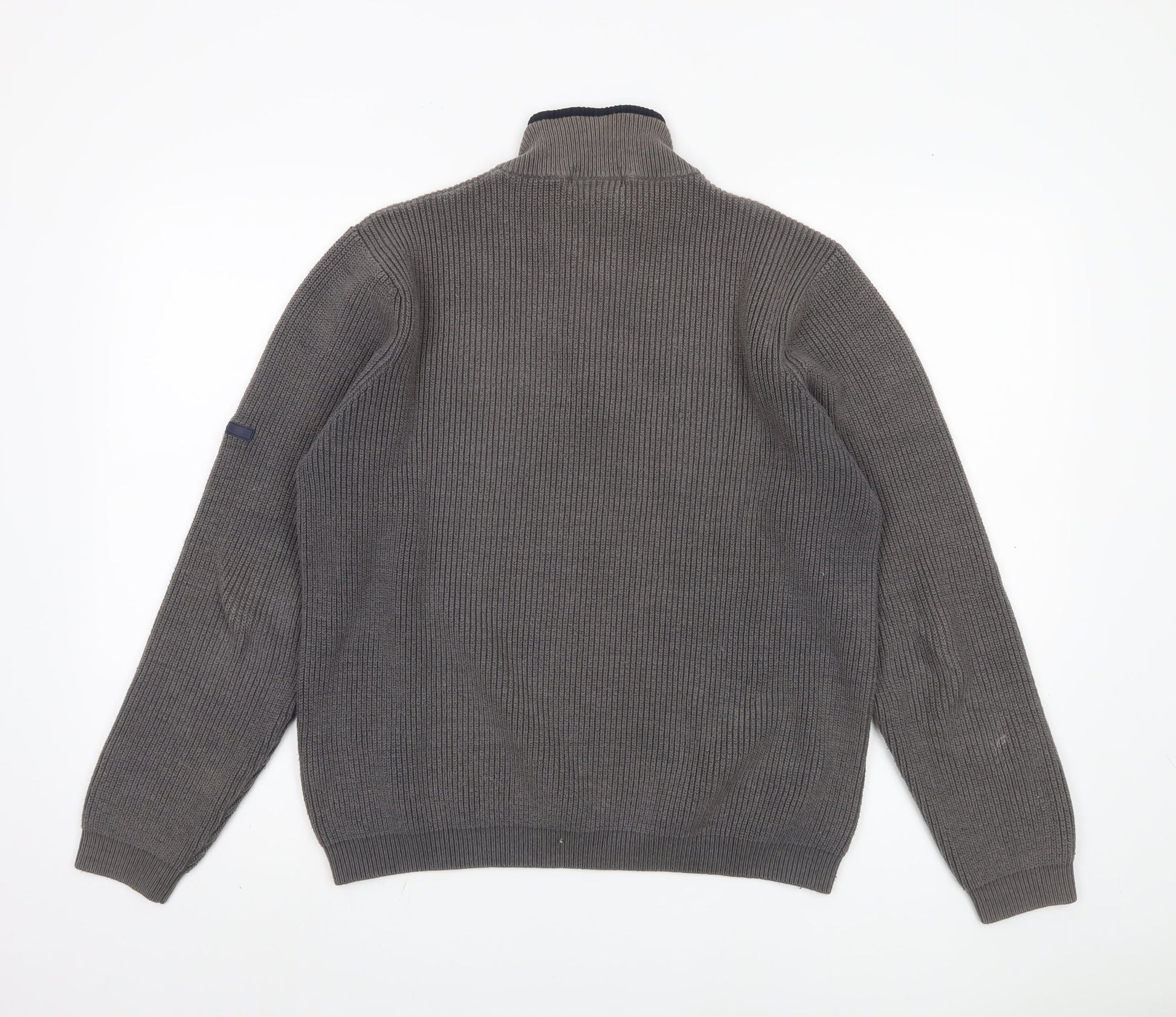 Marks & Spencer Men's Grey Full Zip Jumper - Medium