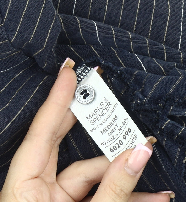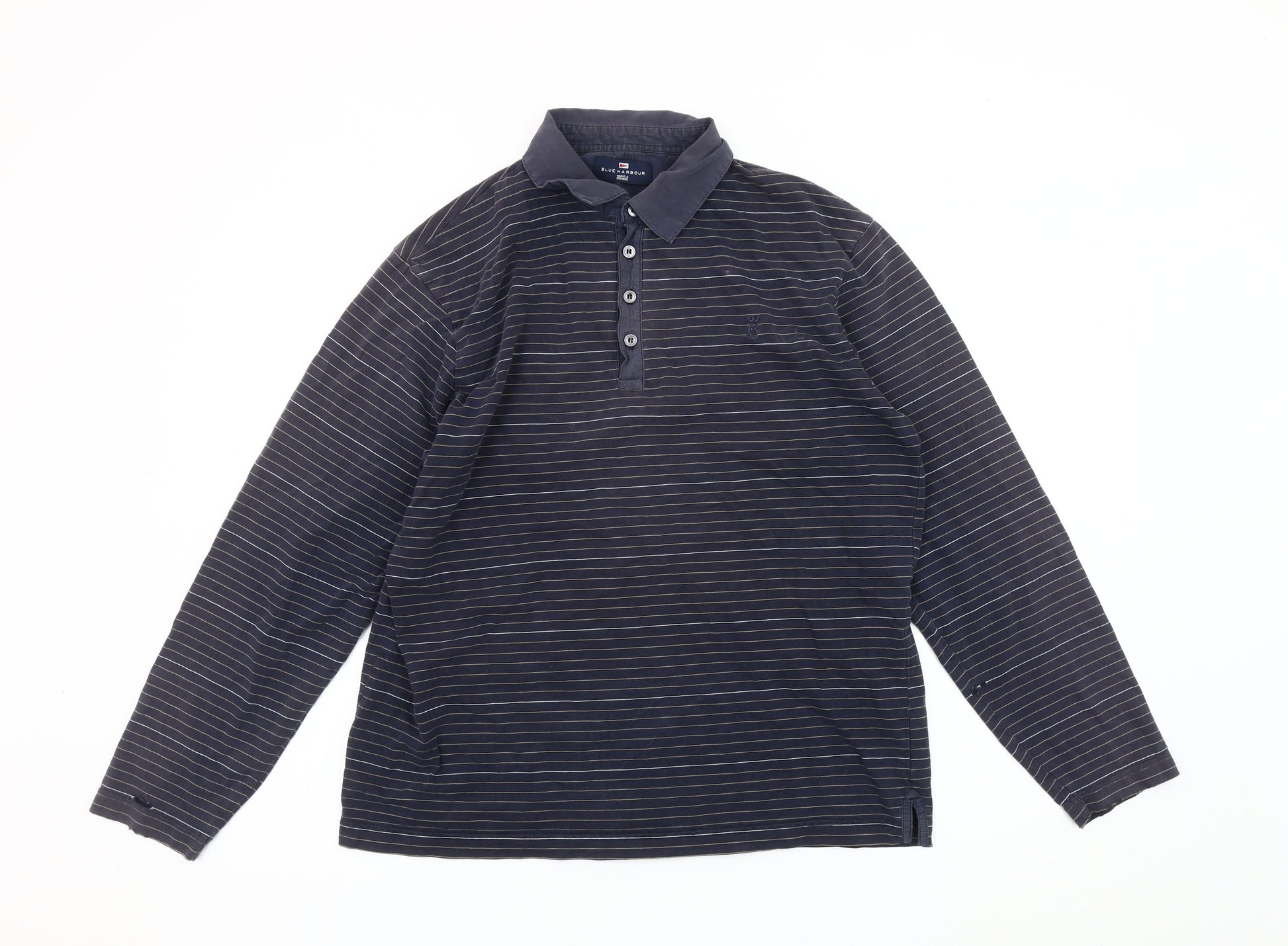 Marks & Spencer Men's Navy Striped Long Sleeve Polo M
