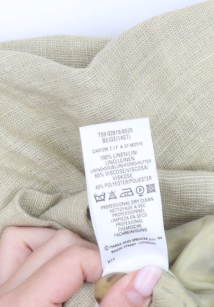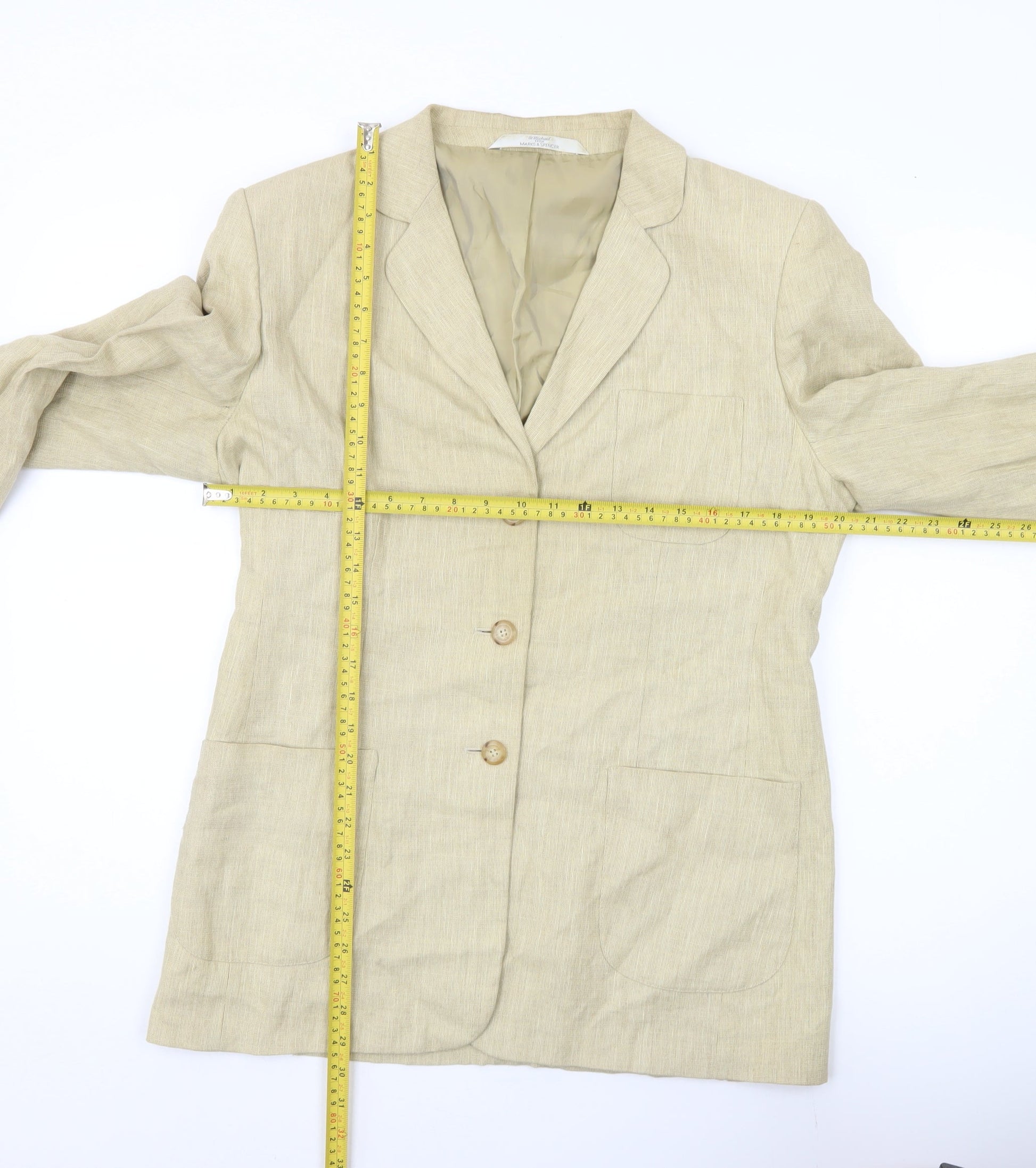 Marks & Spencer Women Beige Linen Blazer UK 14 Long Sleeve Tailored