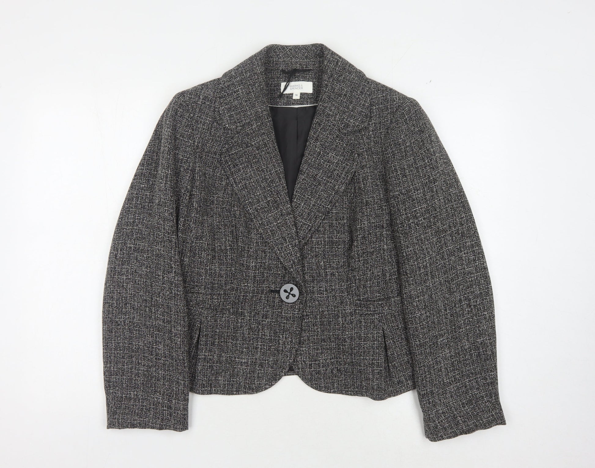 Marks & Spencer Women Grey Herringbone Blazer Size 16