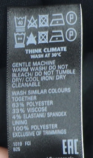 - Material Breakdown: 63% Polyester 33% Viscose 4% Elastane