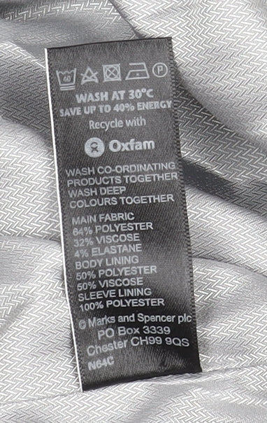- Material Breakdown: 64% Polyester 32% Viscose 4% Elastane