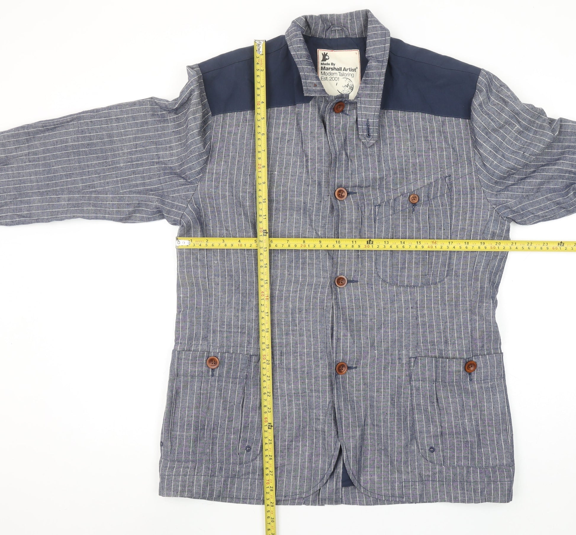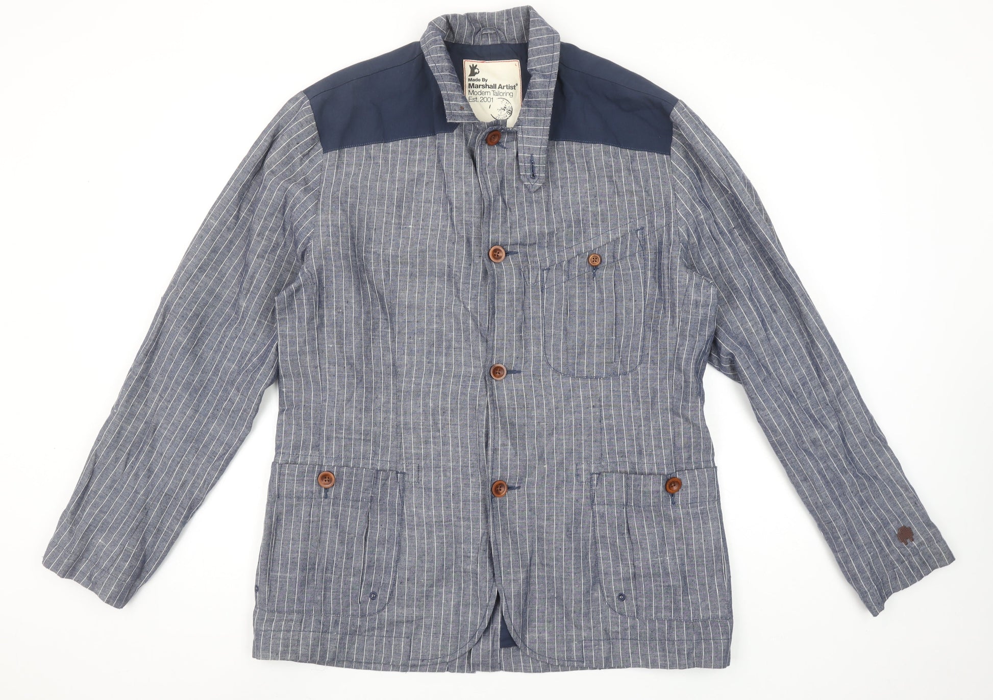 Marshall Artist Men's Blue Striped Cotton Regular Fit Casual Blazer Jacket L