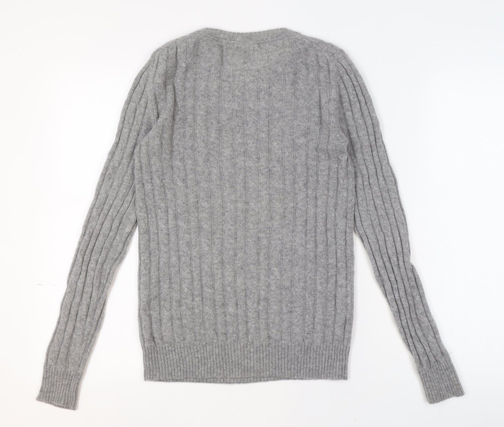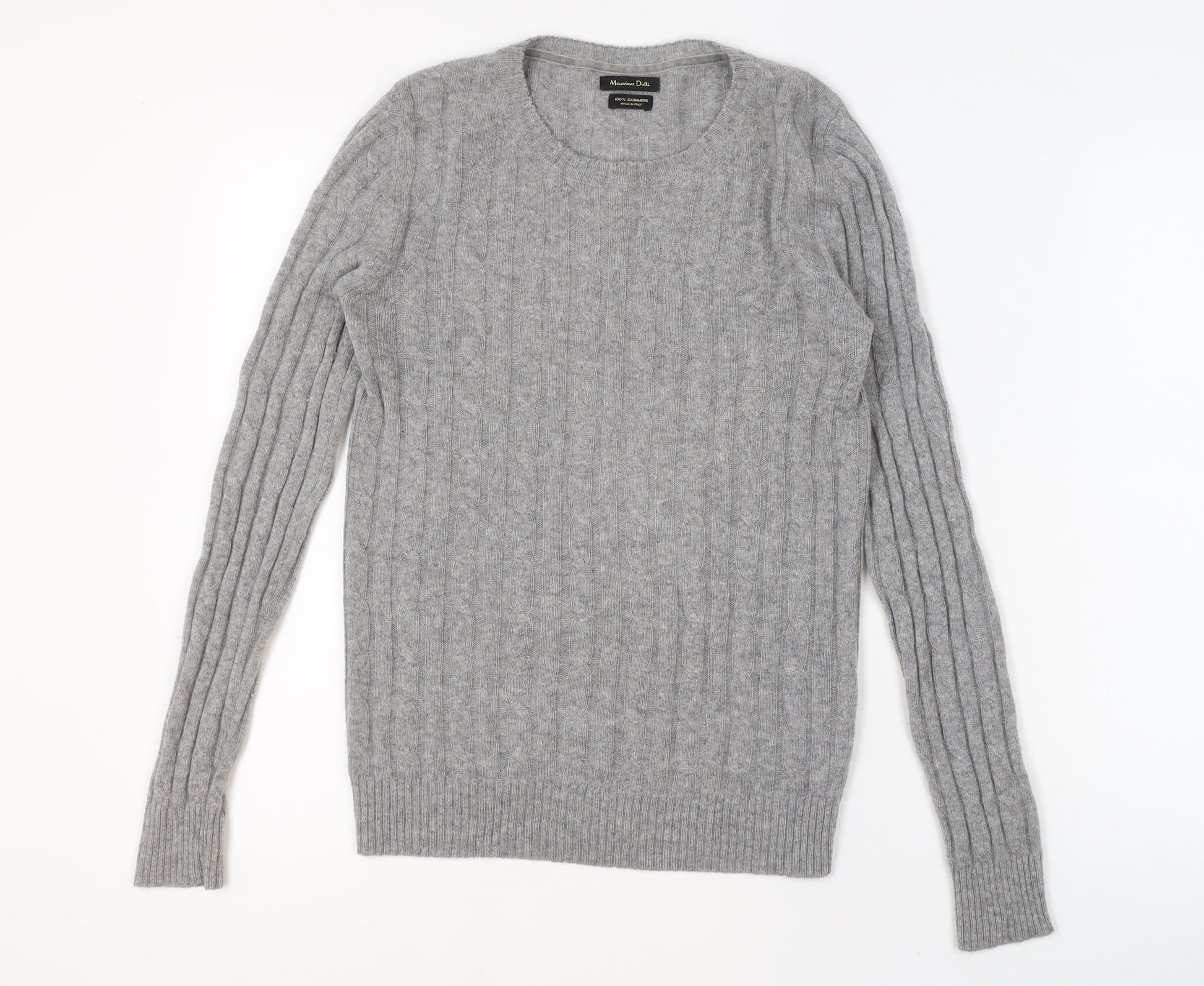 Massimo Dutti Men’s Grey Cashmere Cable-Knit Jumper Size S