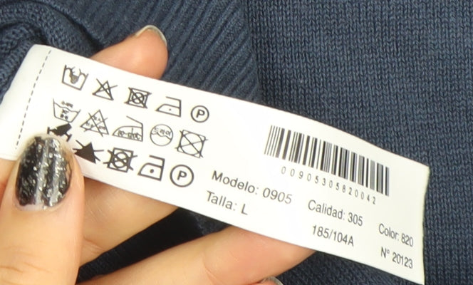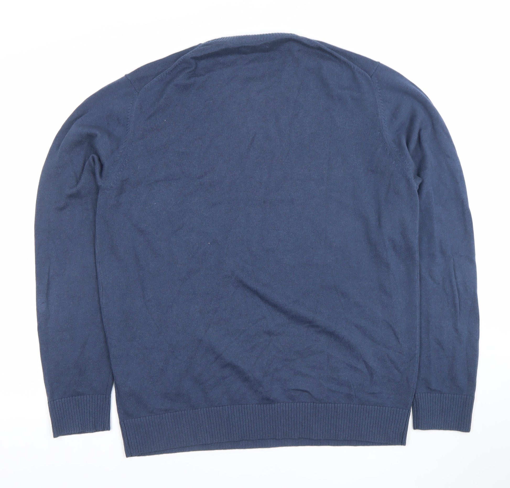 Massimo Dutti Men's Blue Cotton Wool Crew Neck Jumper L