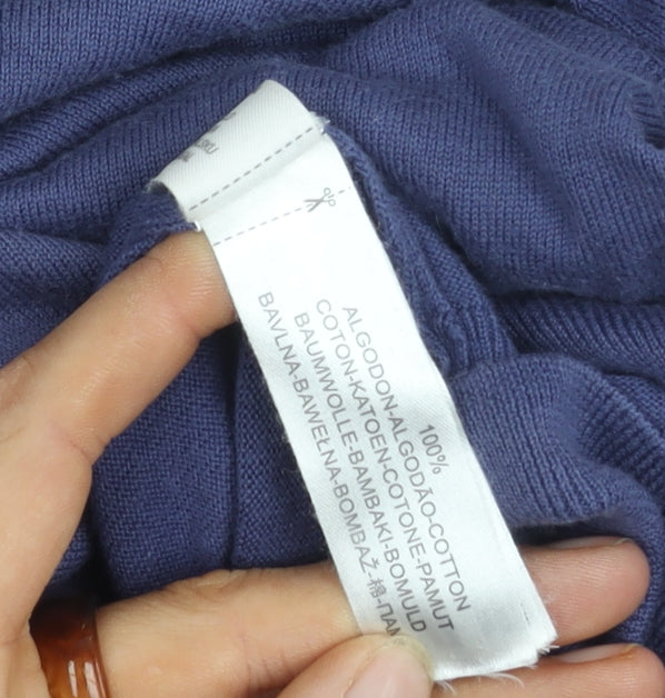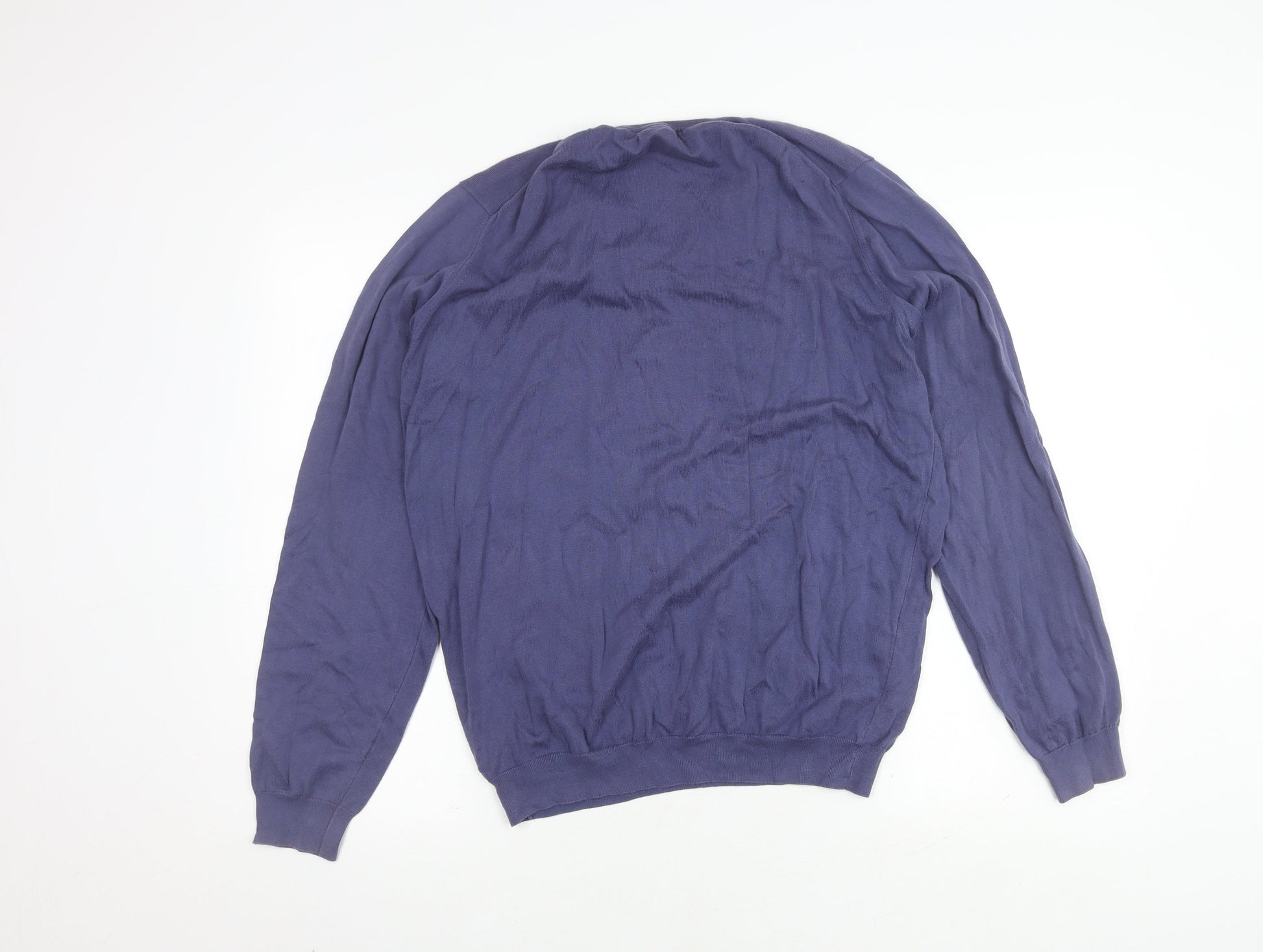 Massimo Dutti Men's Blue V-Neck Cotton Pullover Size L