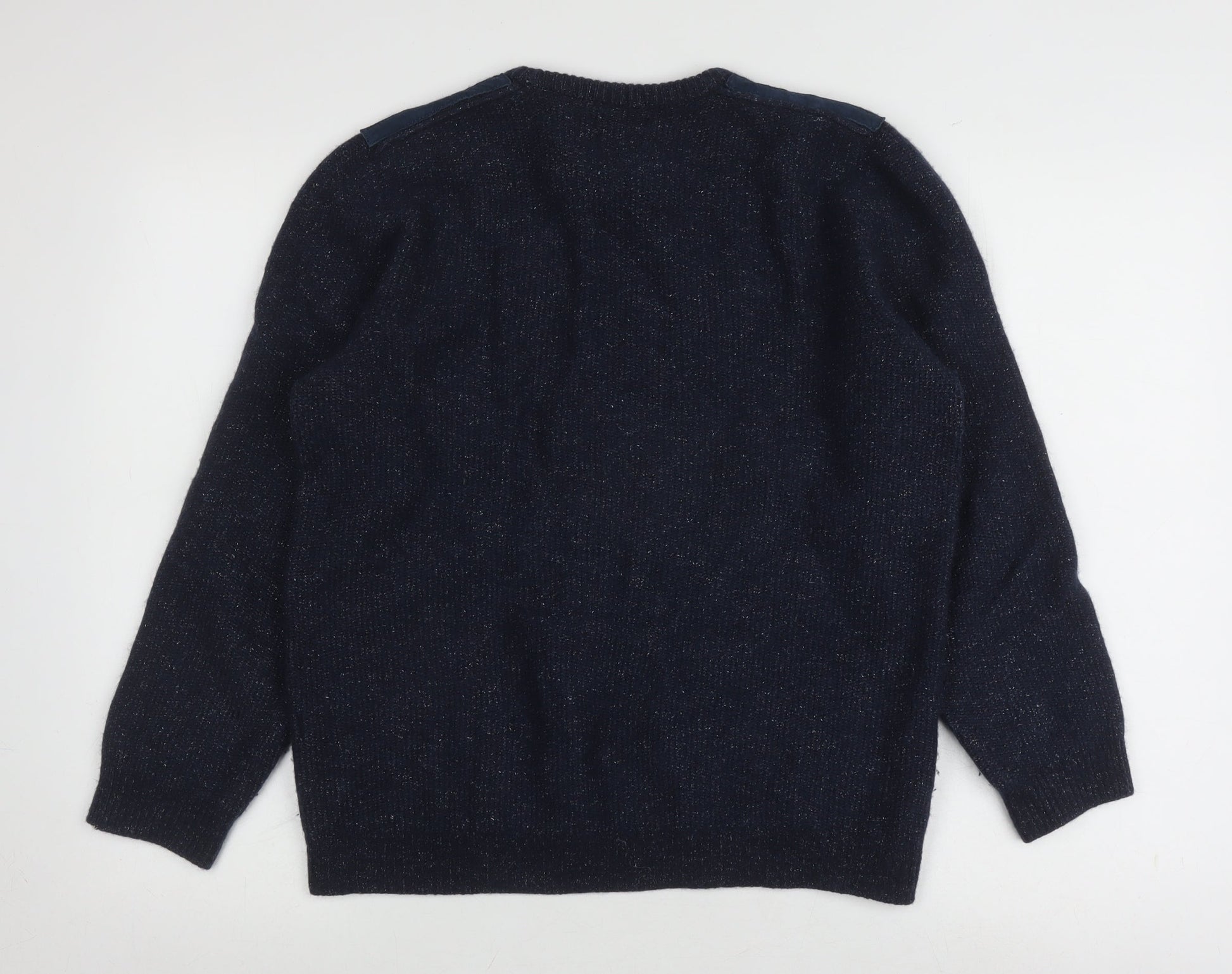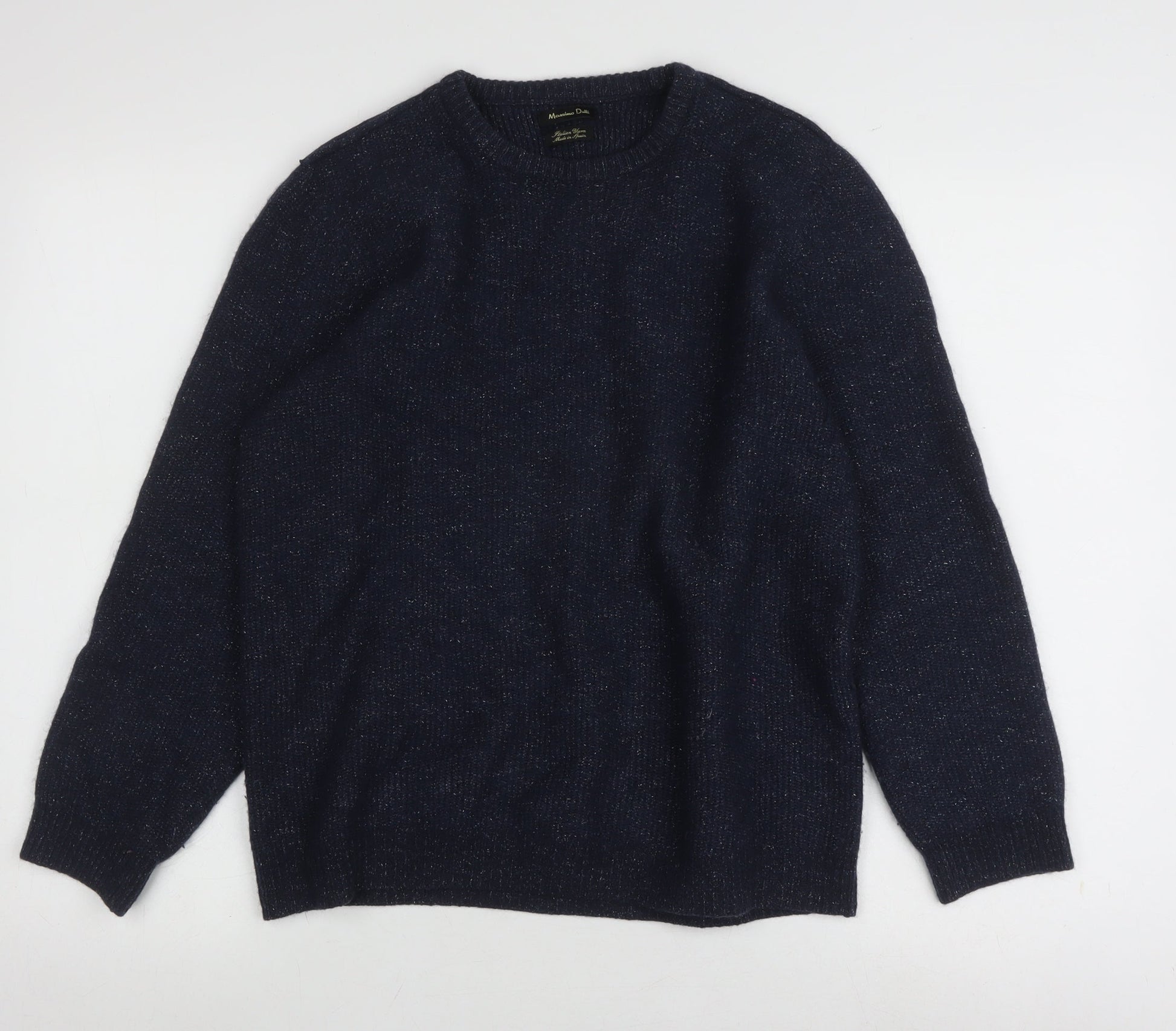 Massimo Dutti Men's Blue Wool Pullover Jumper Medium