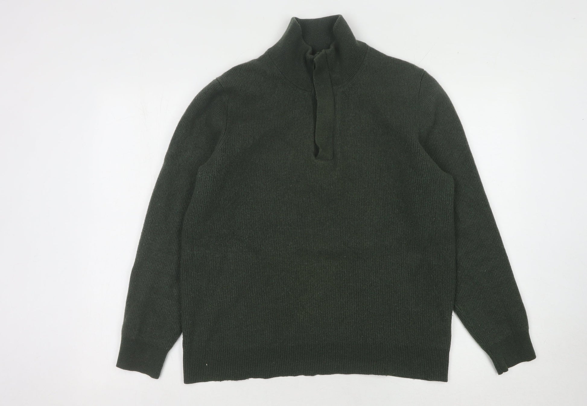 Massimo Dutti Men's Green Wool High Neck Jumper