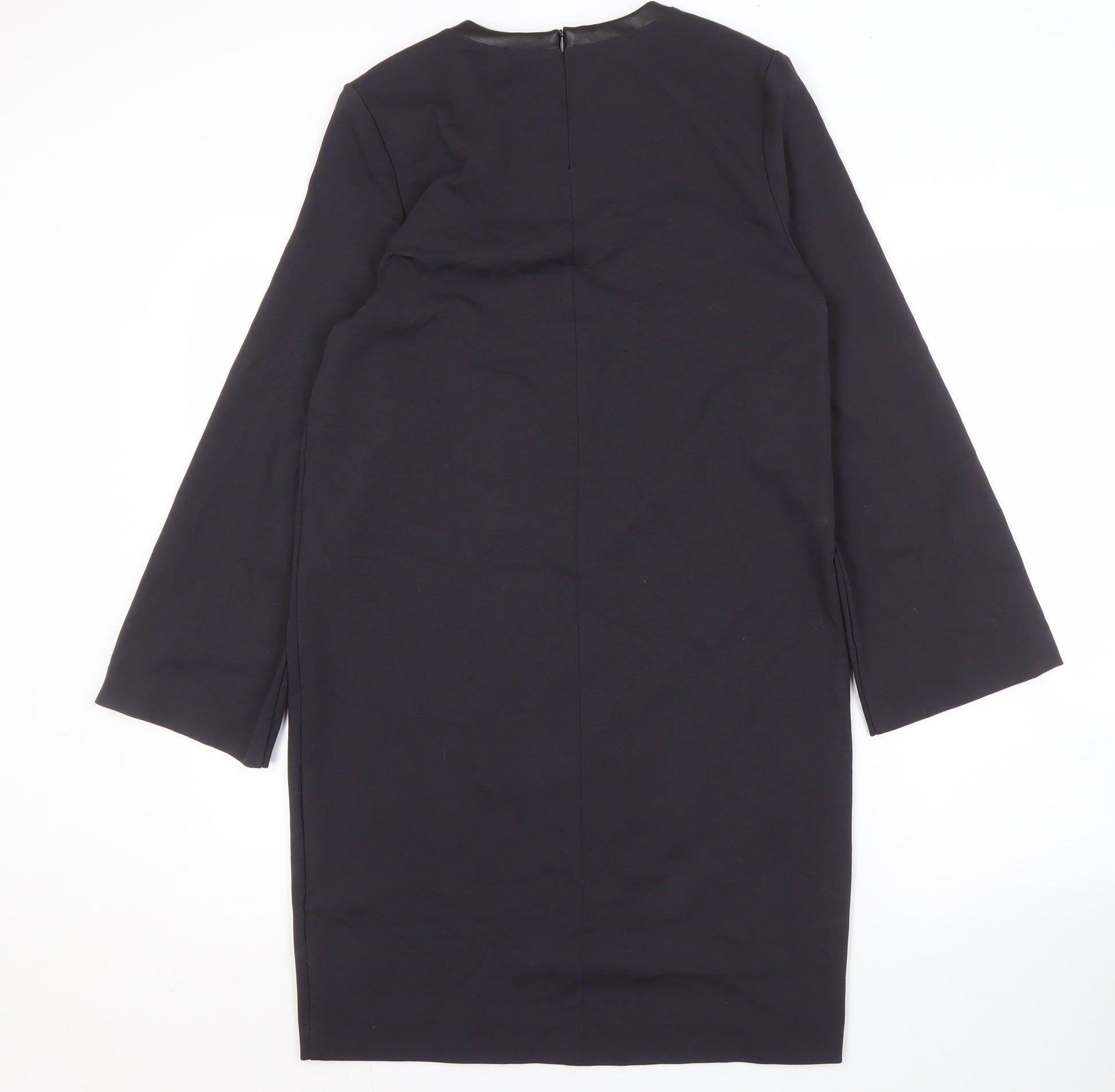 Massimo Dutti Women's Black Shift Dress, Size 8, Long Sleeve