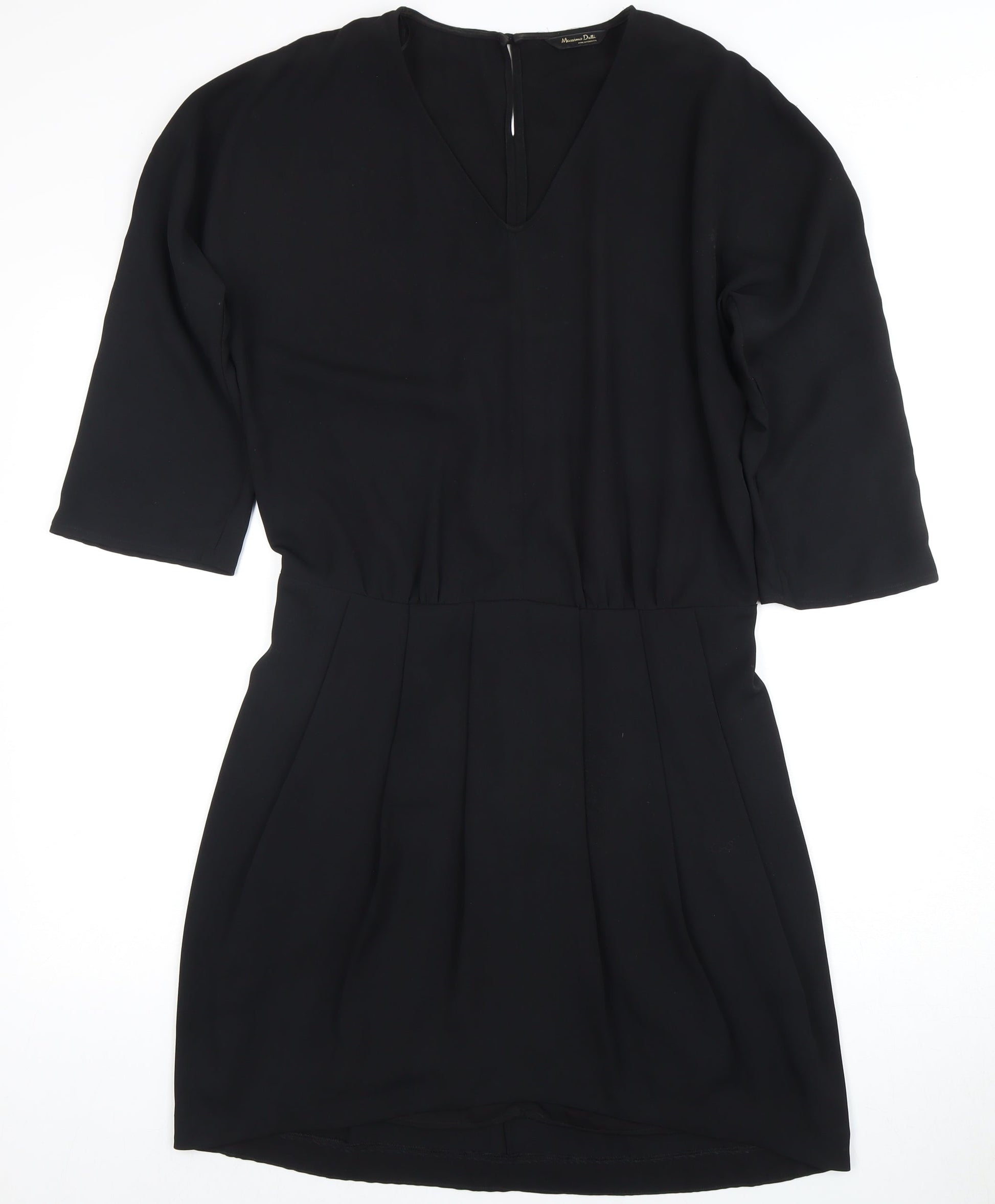 Massimo Dutti Women's Black V-Neck Dress Size 12