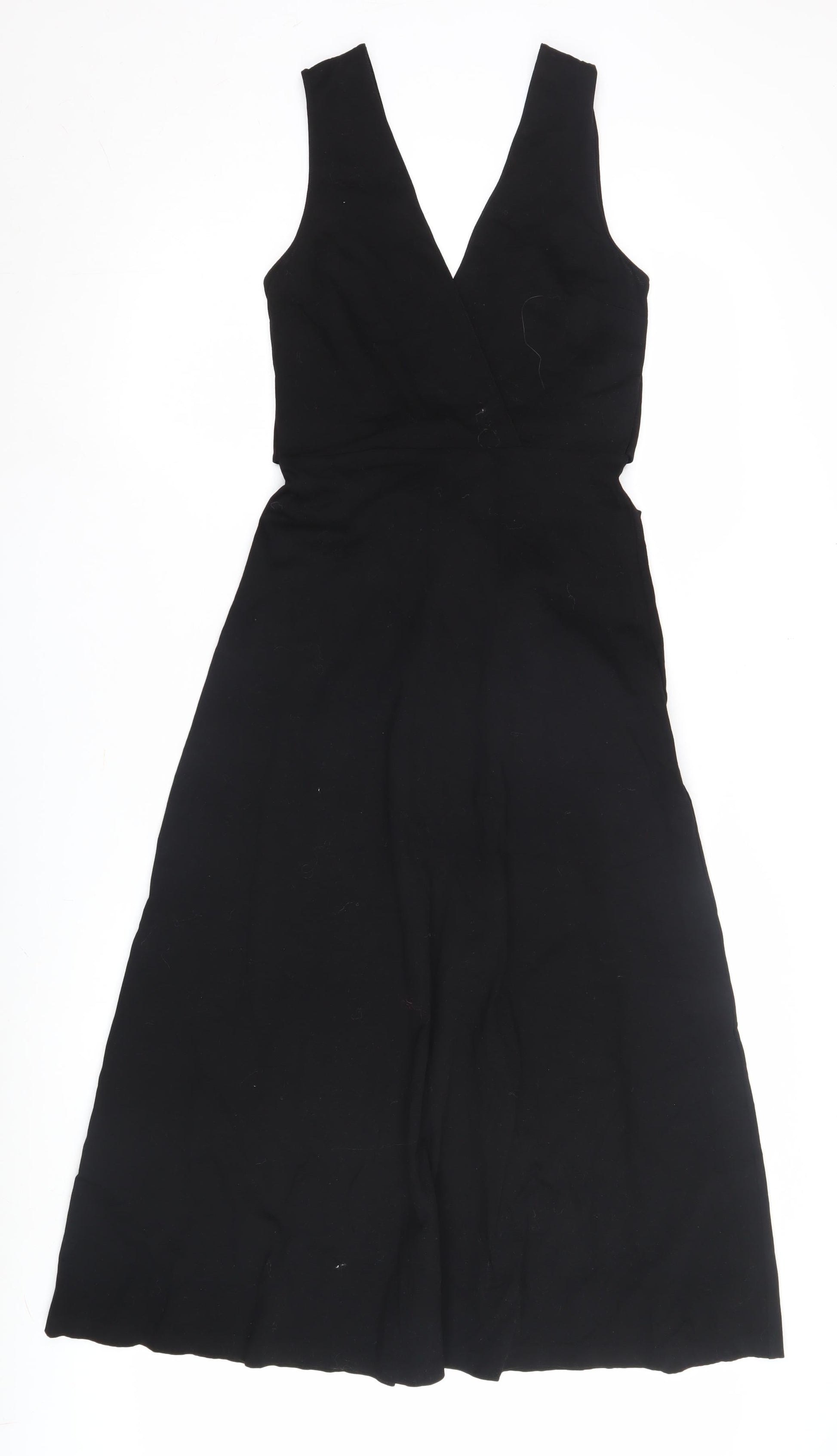 Massimo Dutti Women's Black XS Midi Wrap Dress