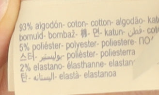 - Material Breakdown: 93% Cotton 5% Polyester 2% Elastane