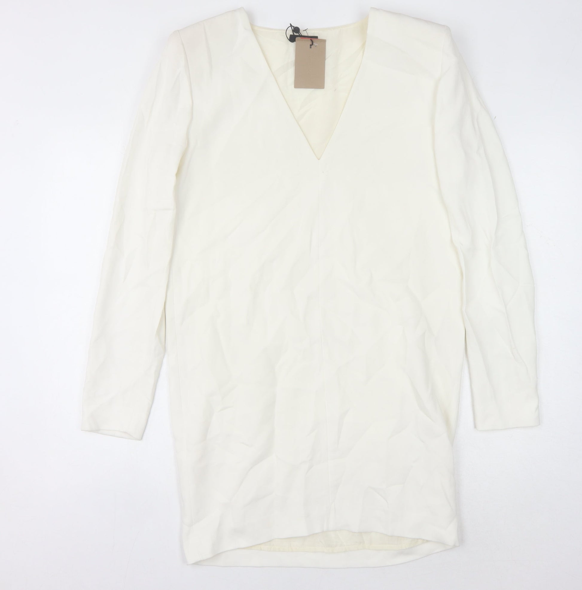 Massimo Dutti Women's White V-Neck Long Sleeve Dress
