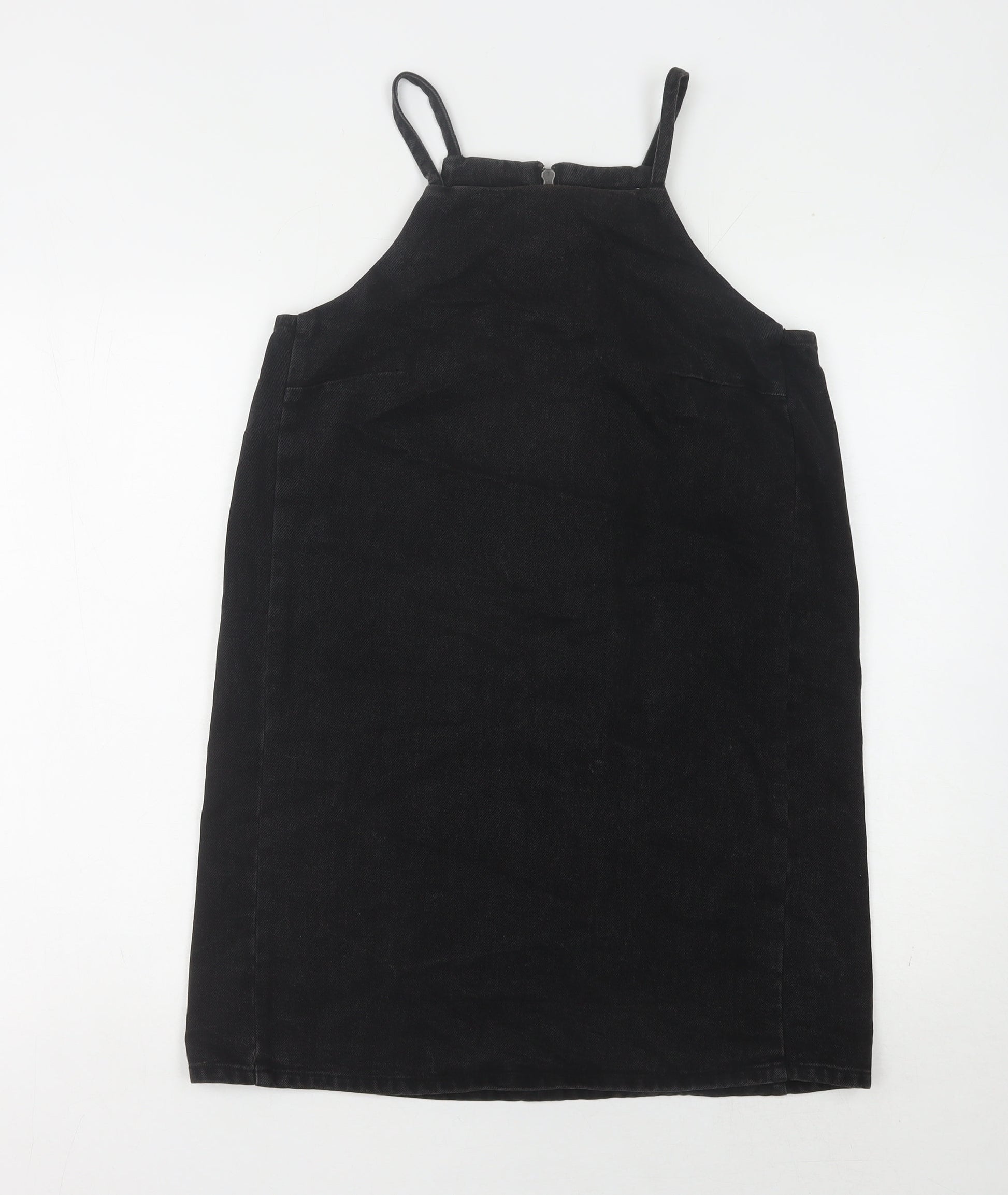 Matalan Black Pinafore Dress, Women, Size 10, Casual Zip