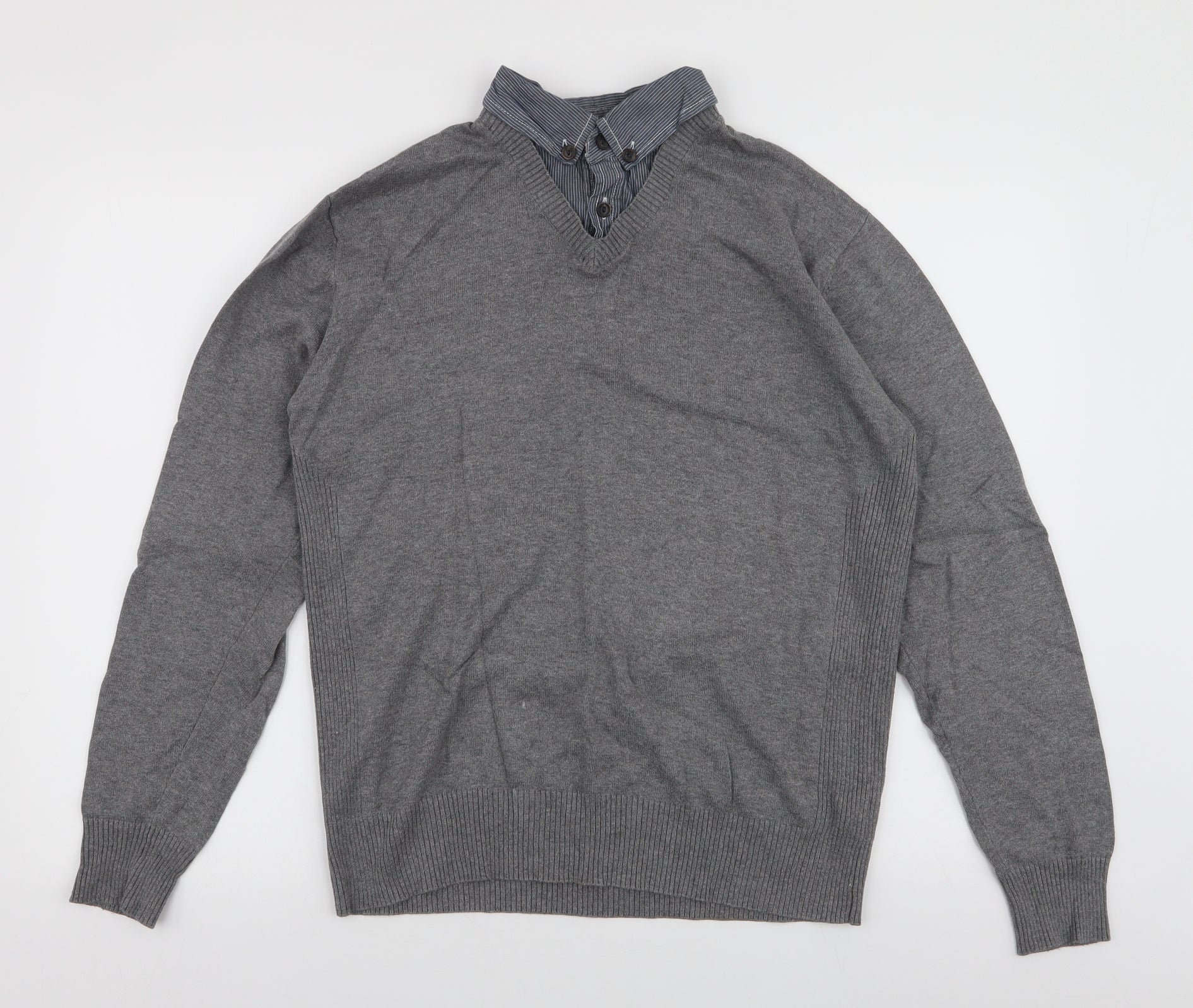 Matalan Mens Grey Collared Cotton Pullover Jumper Size M