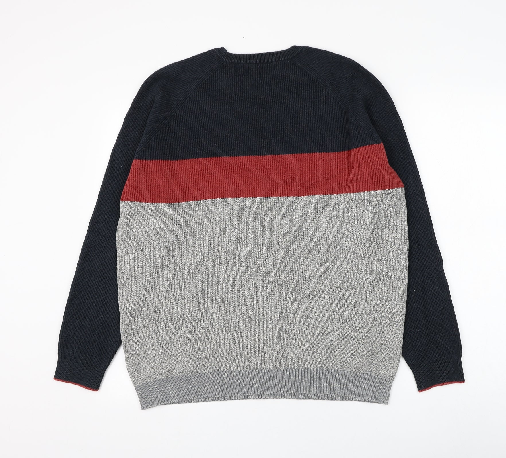 Matalan Mens Grey Round Neck Striped Cotton Pullover Jumper Size L