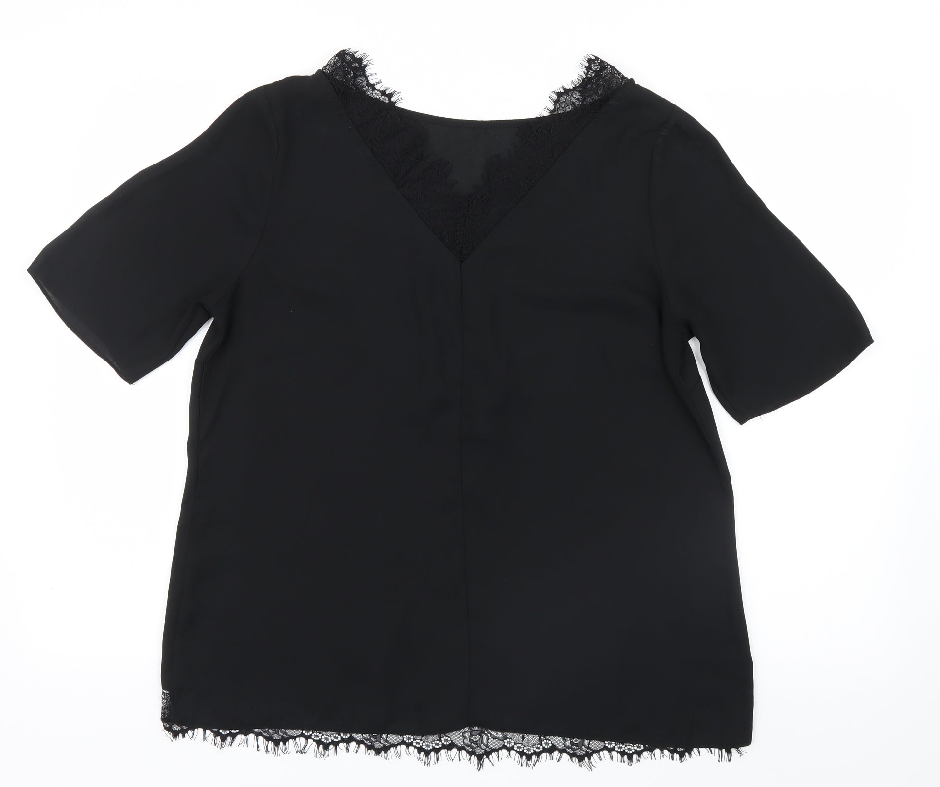 Matalan Womens Black Mesh Basic Blouse Size 14 - Lace detail