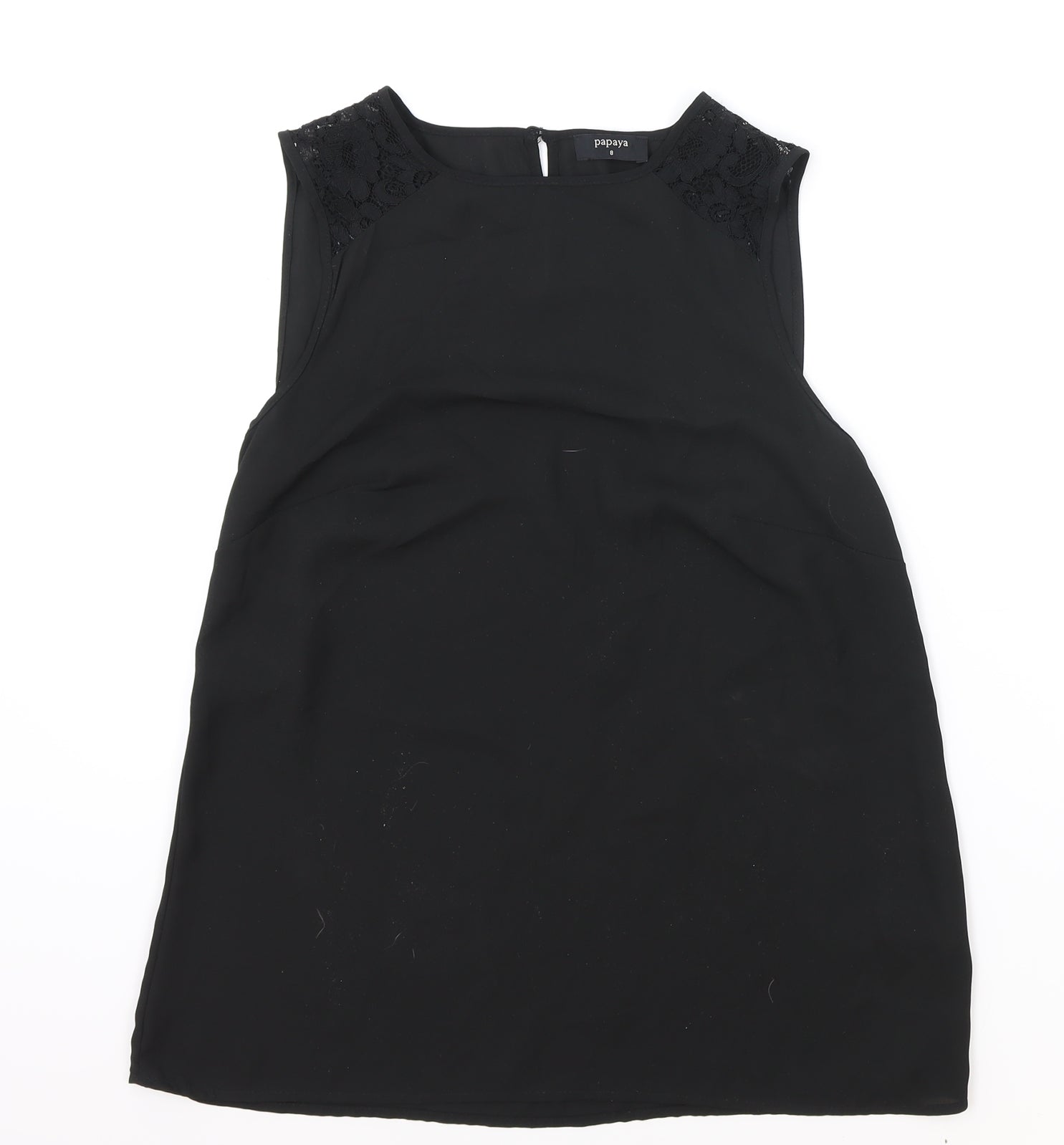 Matalan Womens Black Polyester Basic Blouse Size 8 Boat Neck - Lace Detail