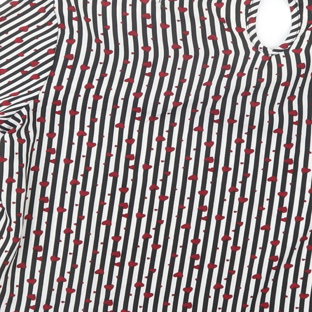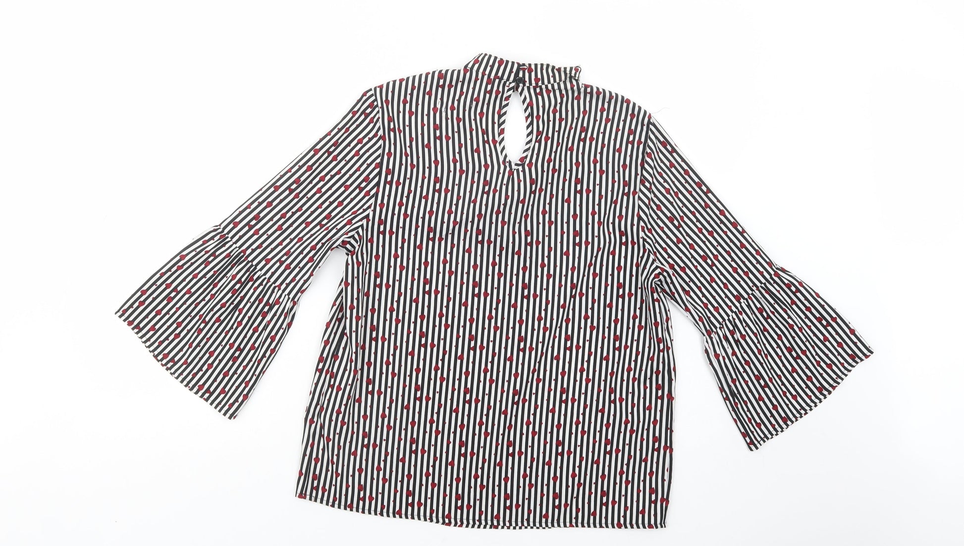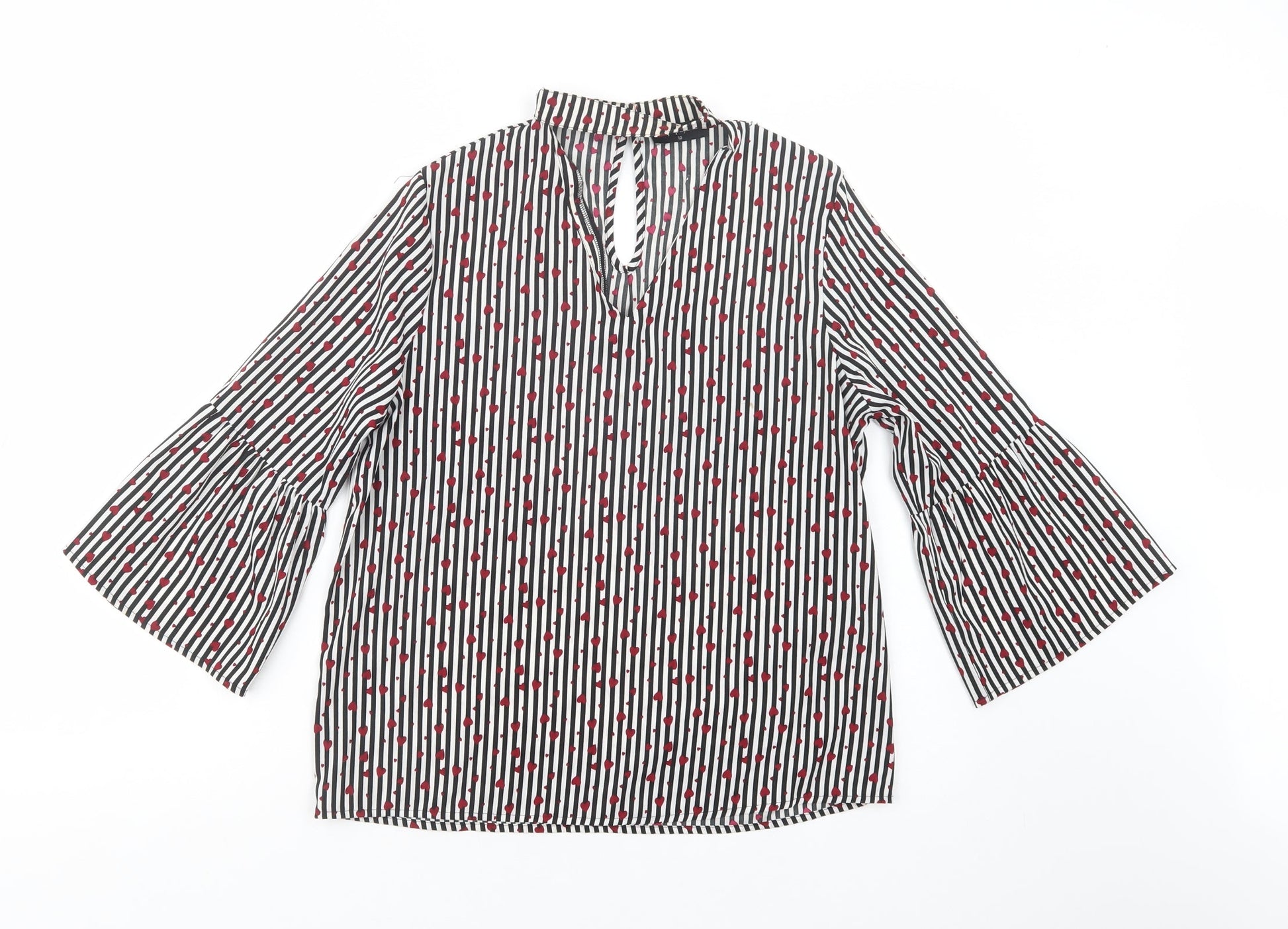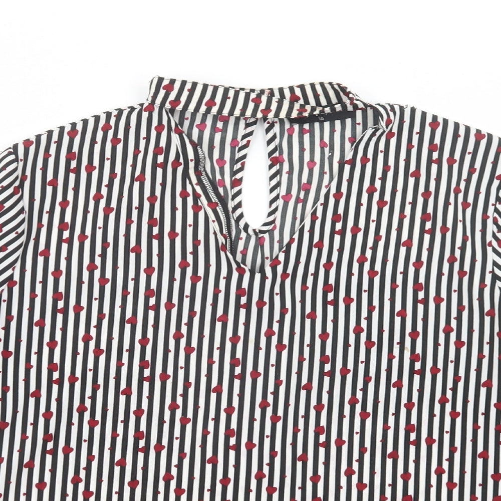 Matalan Womens Black Striped Polyester Basic Blouse Size 10 V-Neck