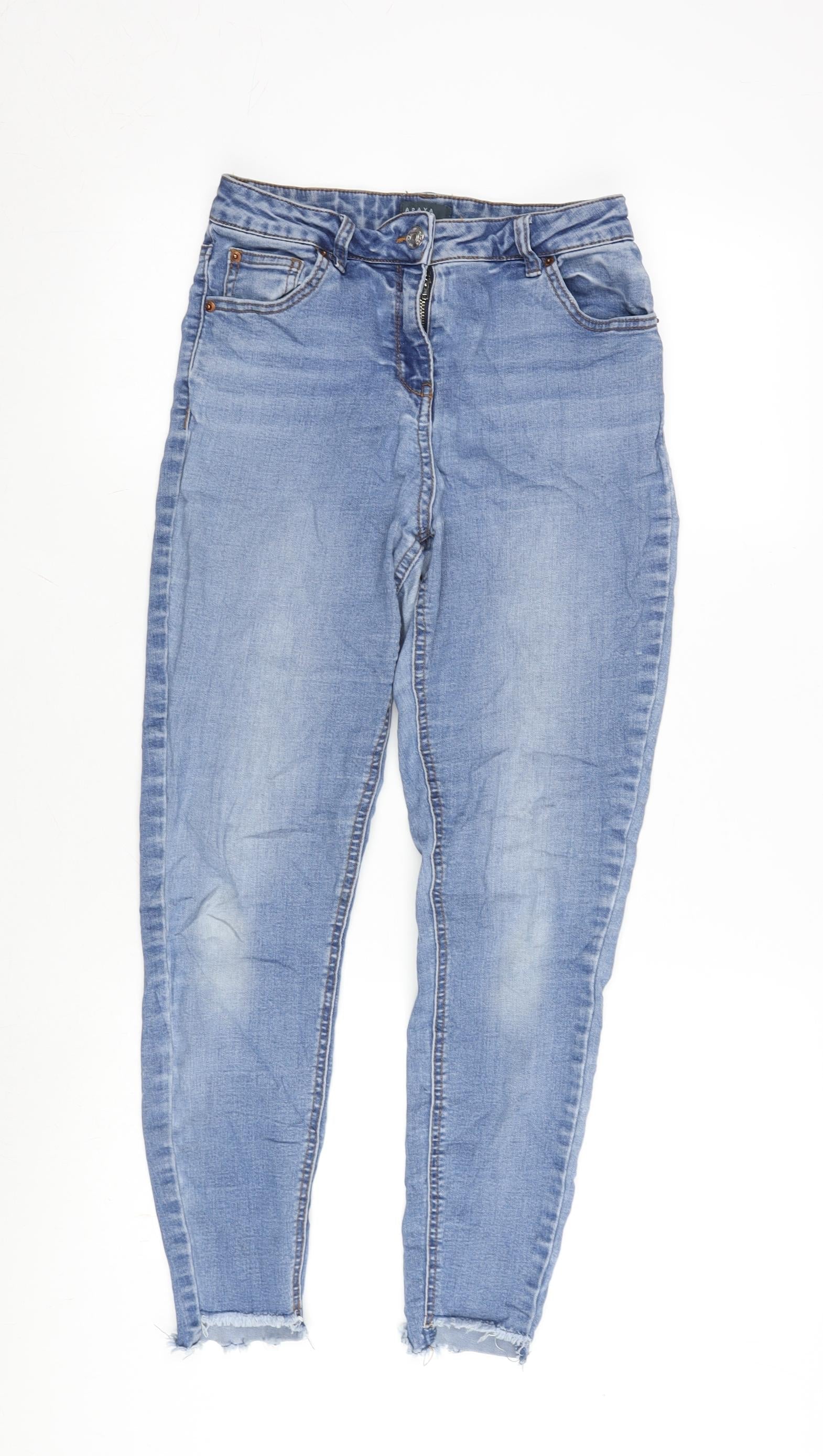 Matalan Womens Blue Cotton Blend Tapered Jeans Size 12 L28.5 in Regular Zip - Raw Hem