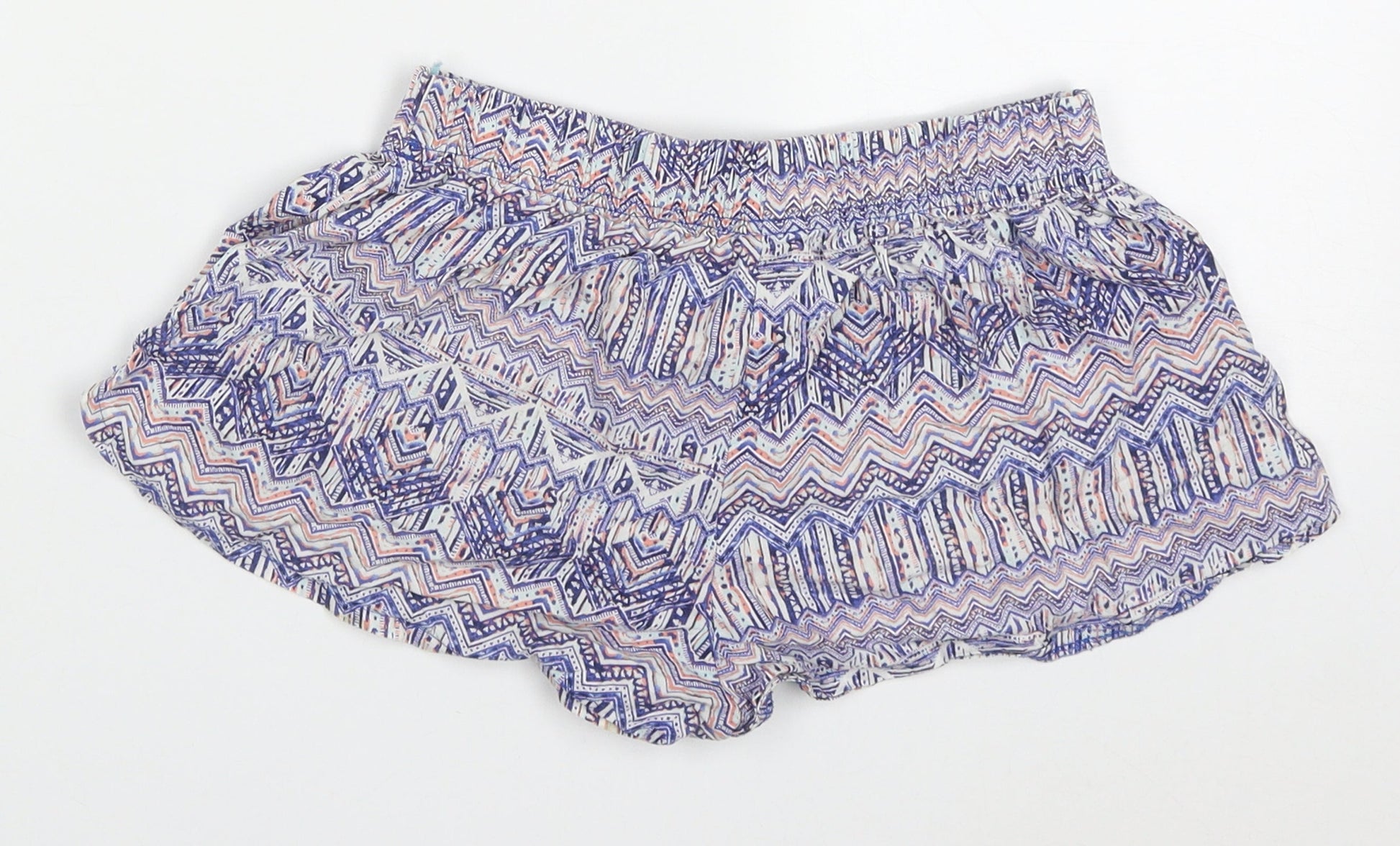 Matalan Womens Blue Geometric Cotton Hot Pants Shorts Size S Regular Drawstring - Pyjama Shorts