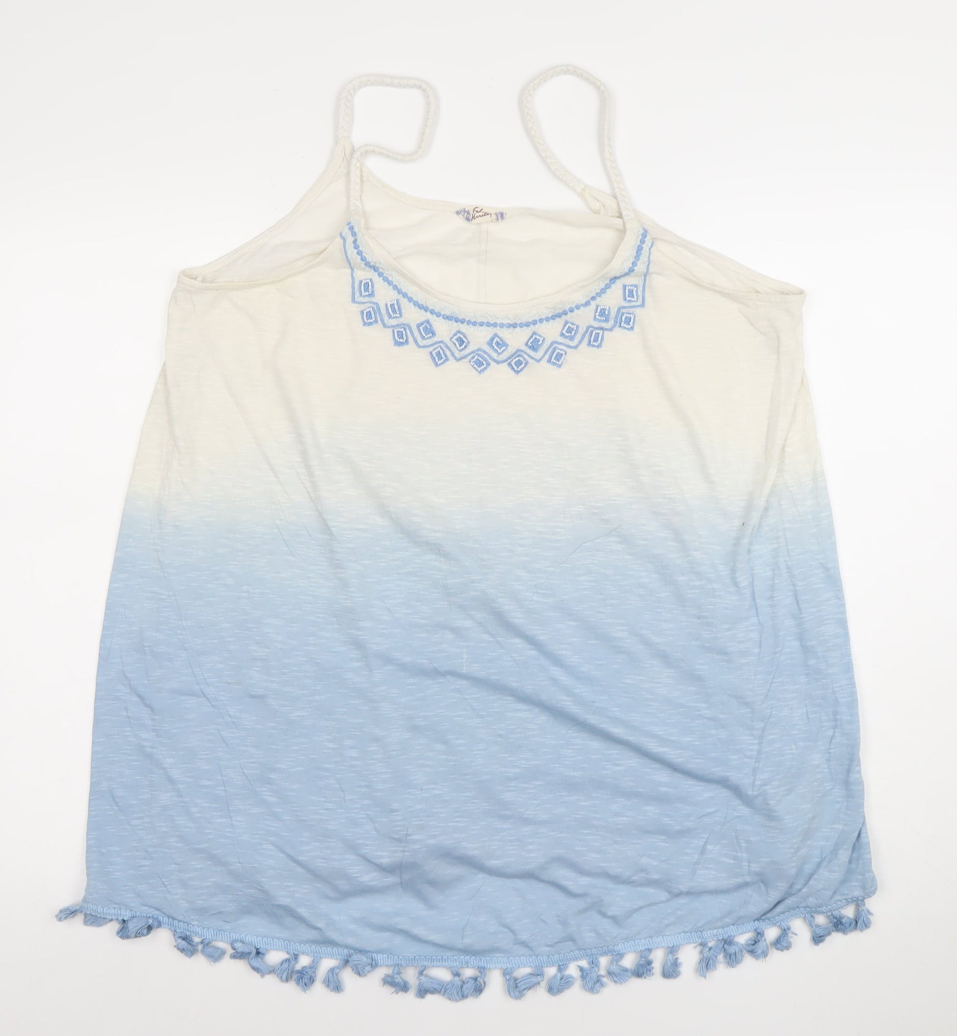 Matalan Womens Blue Ombre Embroidered Tassel Hem Camisole Top Size 18