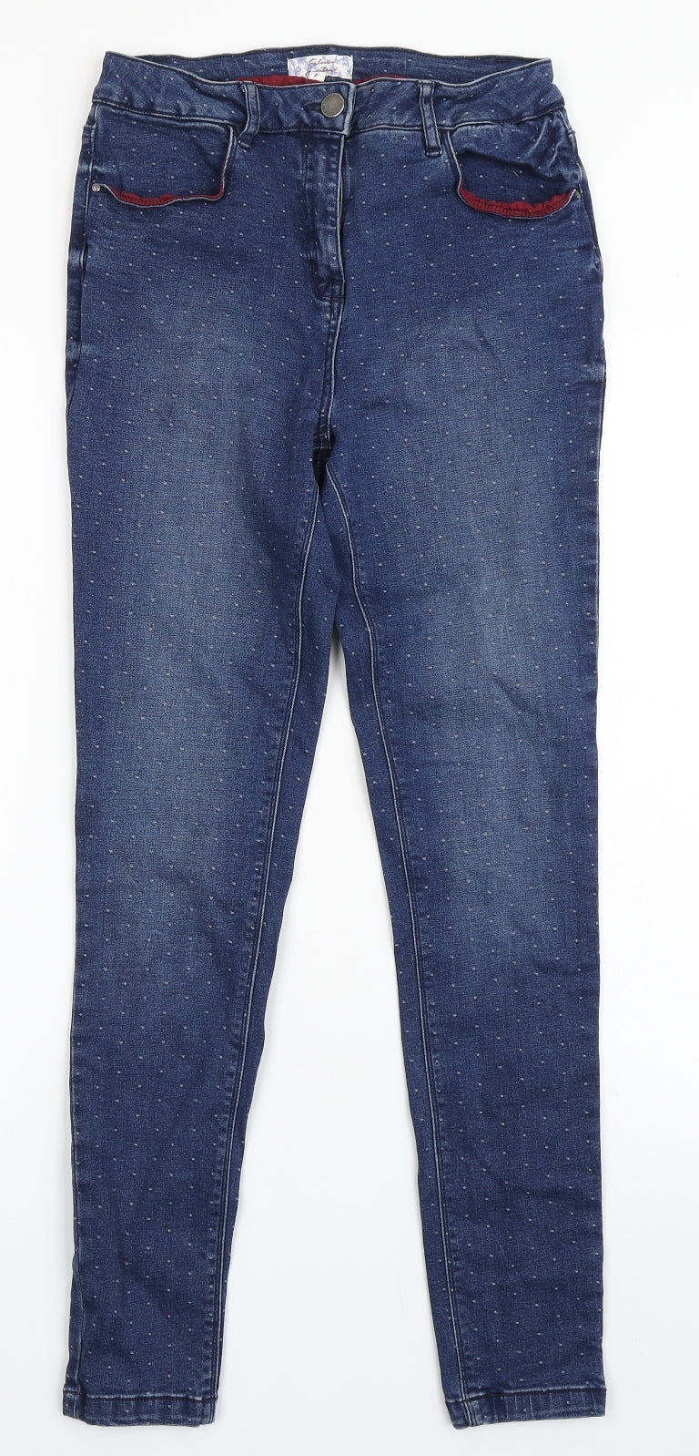 Matalan Womens Blue Polka Dot Cotton Skinny Jeans Size 8 L27.5 in Regular Button
