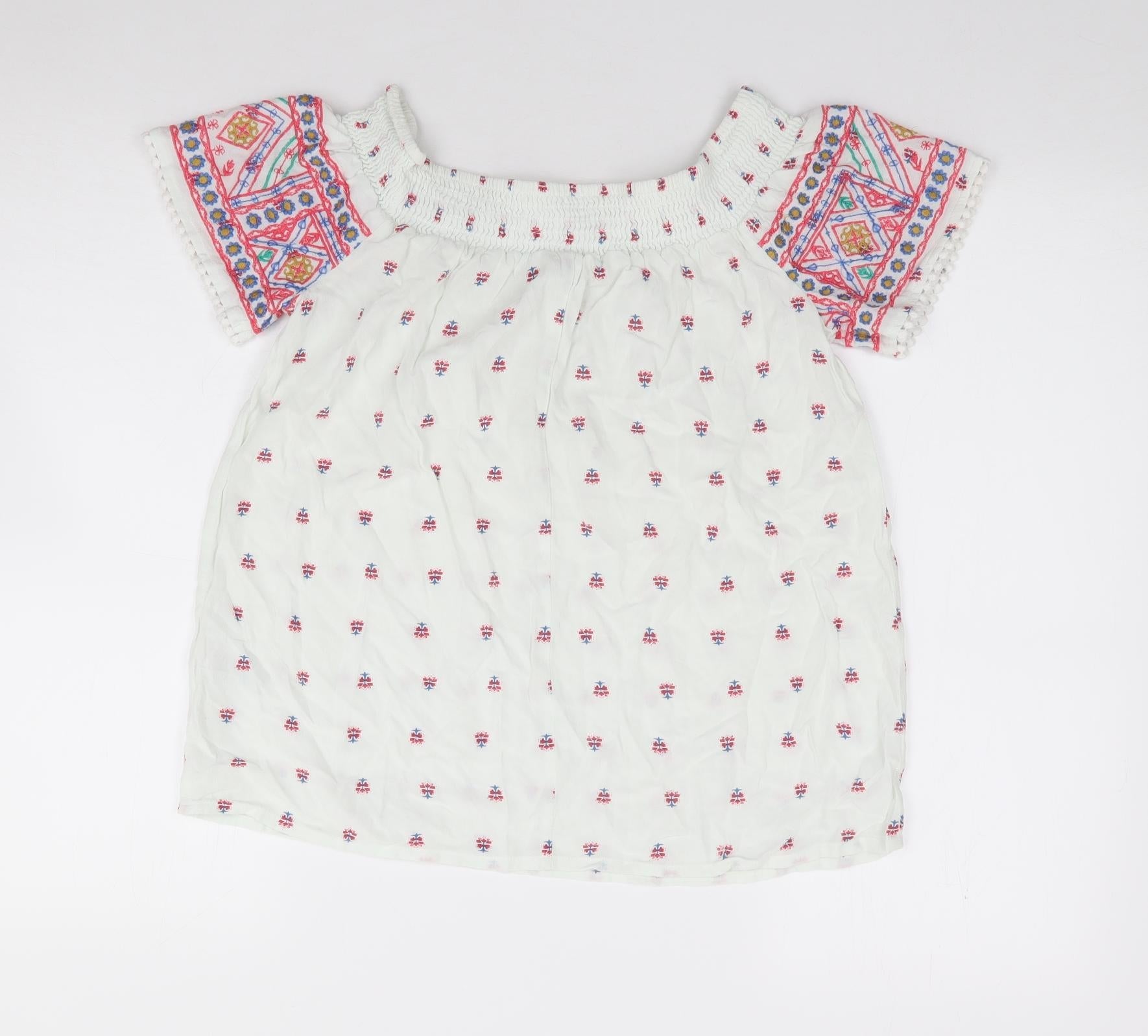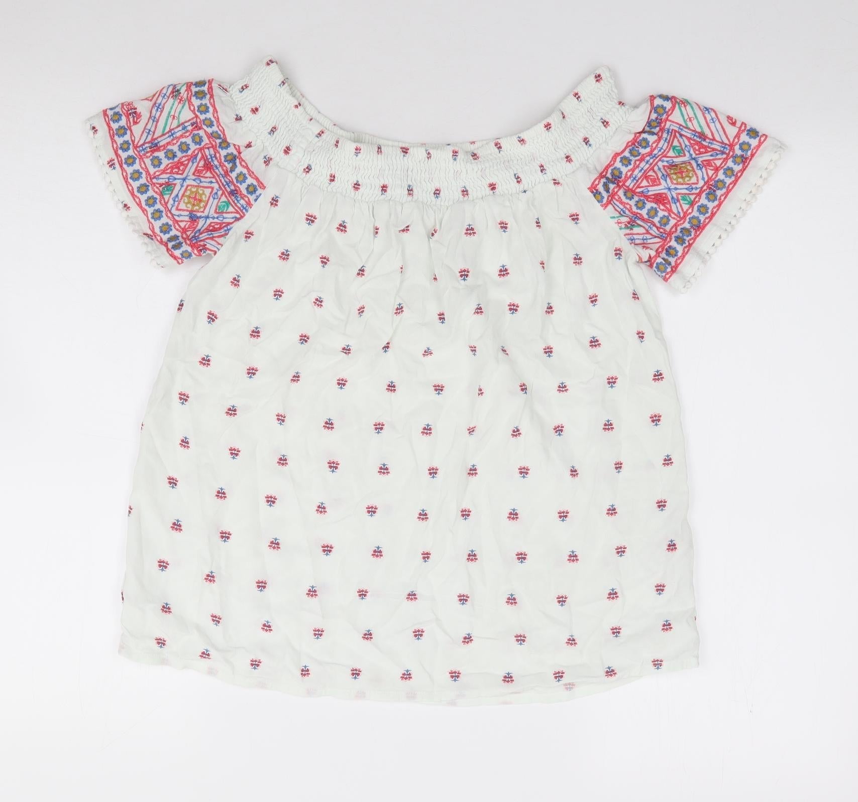 Matalan Womens Ivory Geometric Viscose Jersey Blouse Size 8 Off the Shoulder