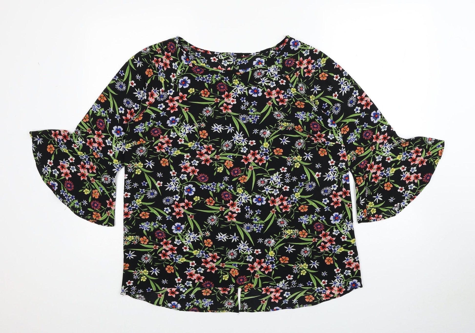 Matalan Womens Multicoloured Floral Polyester Basic Blouse Size 12 Boat Neck - Bell Sleeve