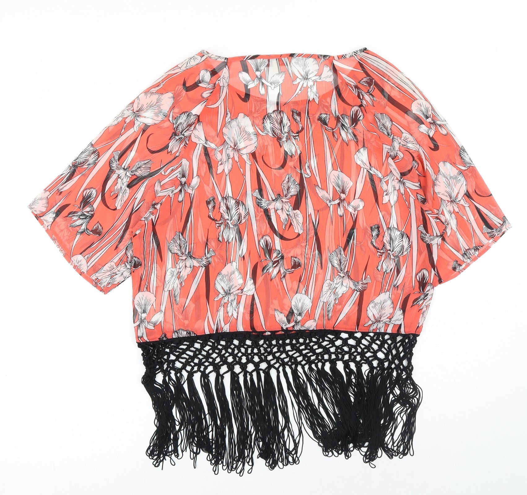 Matalan Womens Orange Floral Polyester Basic Blouse Size 10 Boat Neck