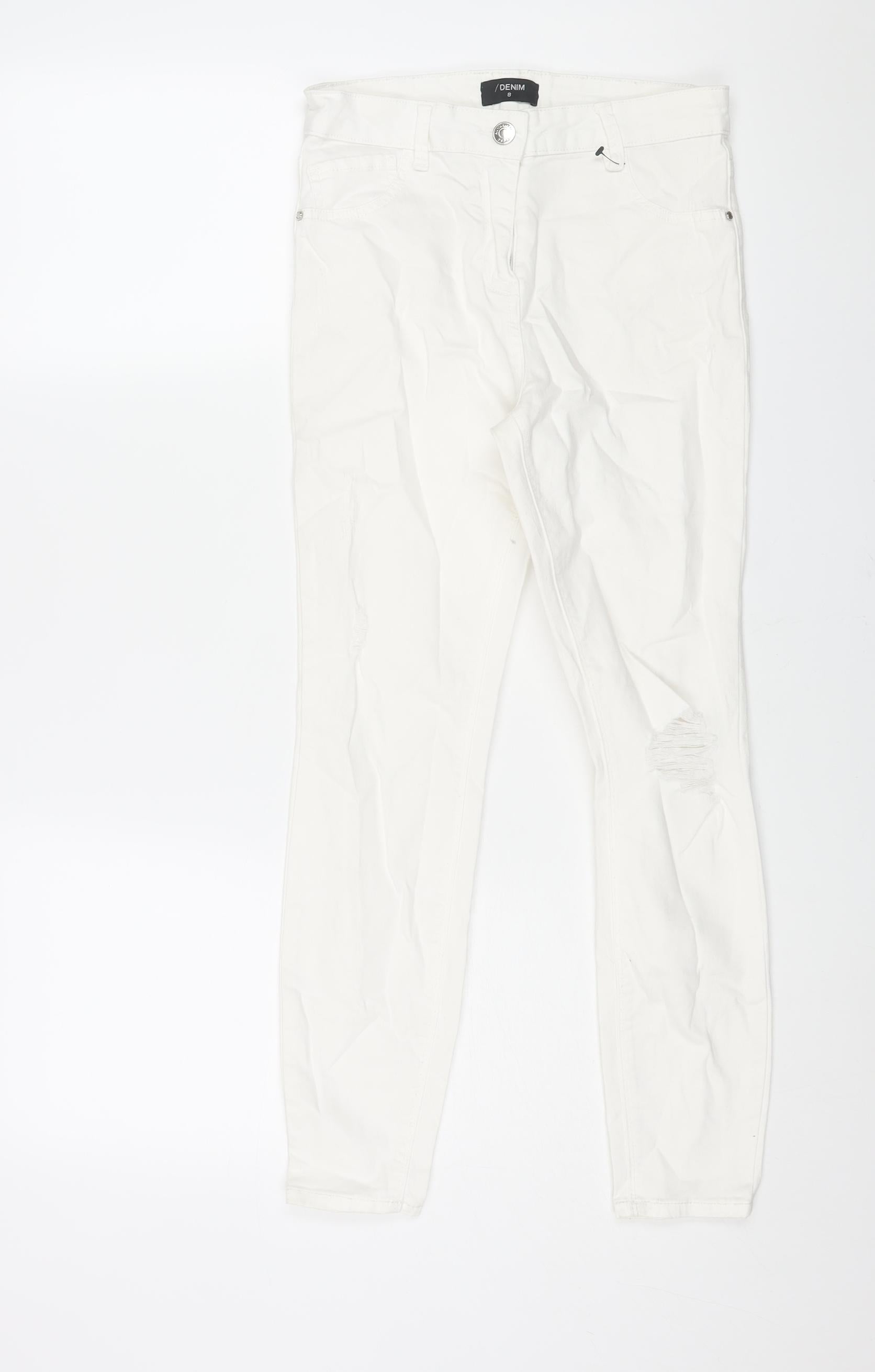 Matalan Womens White Cotton Skinny Jeans Size 8 L25 in Regular Zip