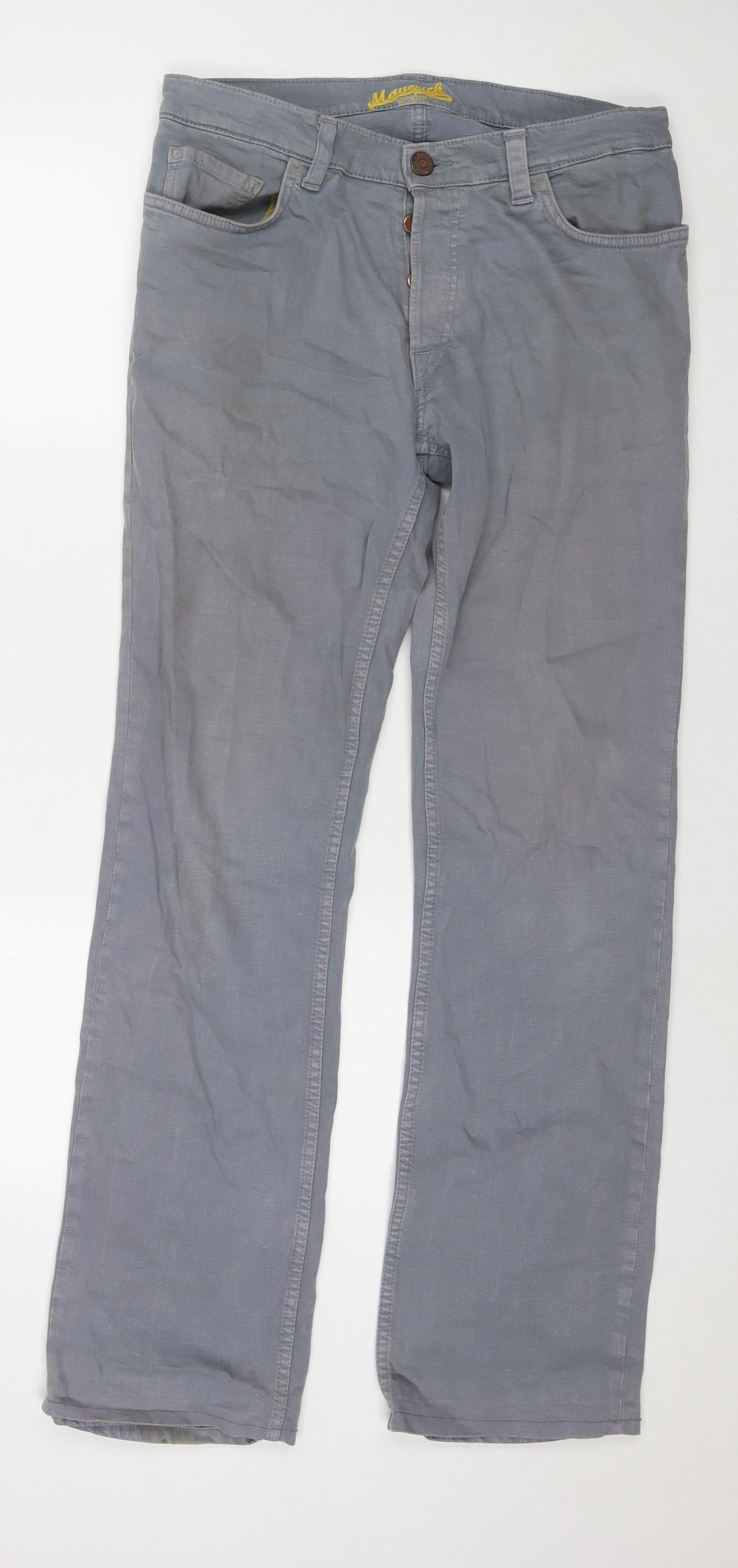 Mavericks Mens Grey Cotton Straight Jeans Size 32 in L34 in Regular Zip