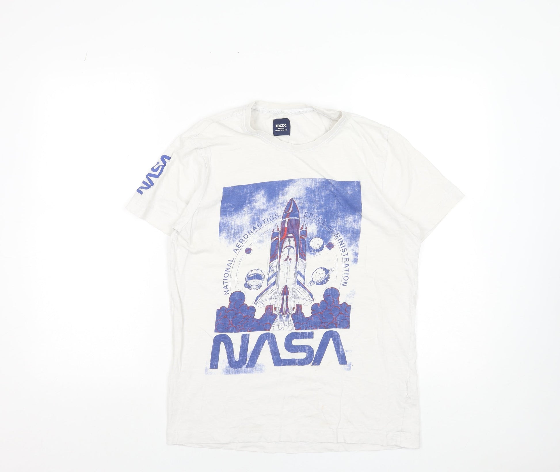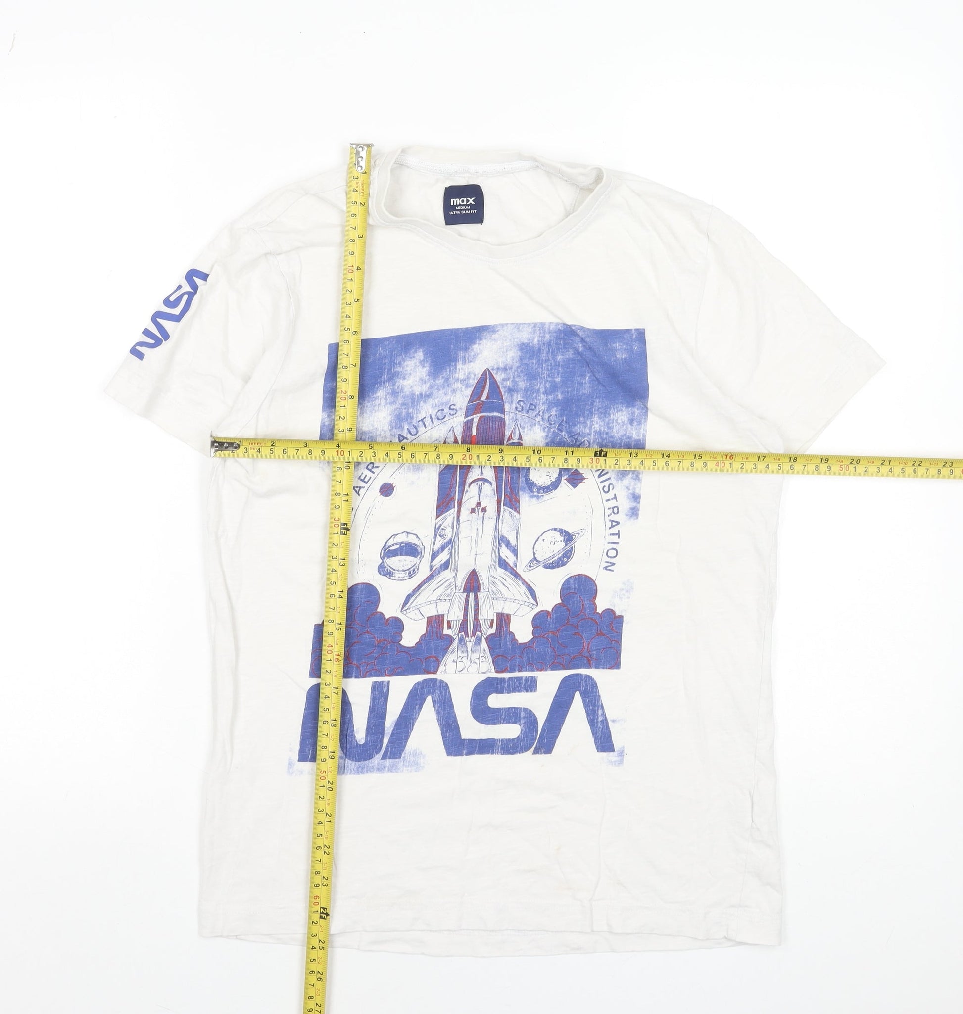 Max NASA White Cotton Men's Ultra Slim Fit Graphic T-Shirt Medium