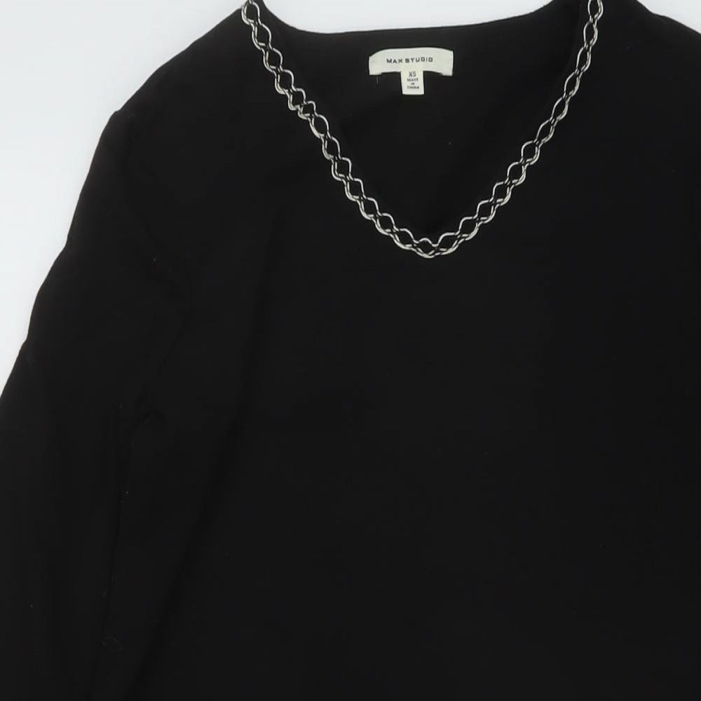 Max Studio Womens Beige Polyester A-Line Size XS V-Neck Pullover