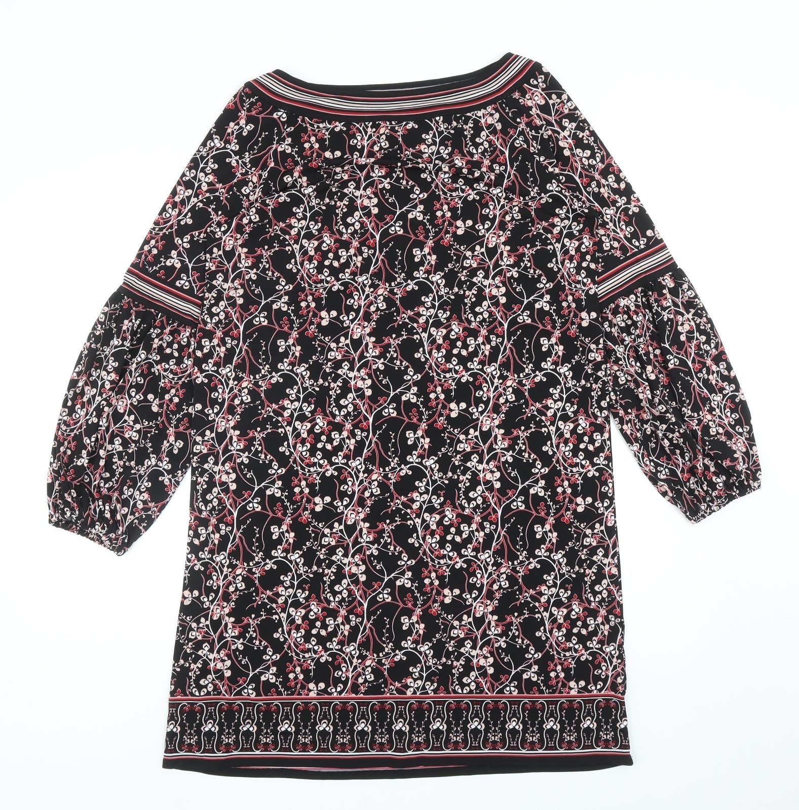 Max Studio Womens Black Geometric Polyester Shift Size M Boat Neck Pullover