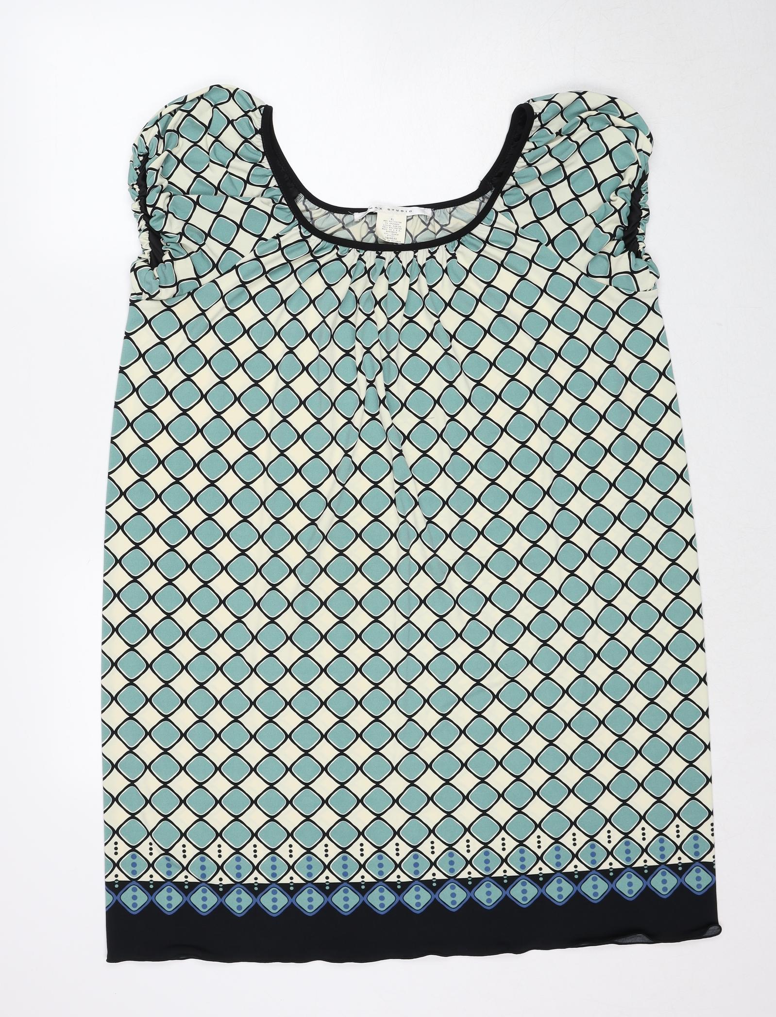 Max Studio Womens Blue Geometric Polyester A-Line Size XL Round Neck Pullover